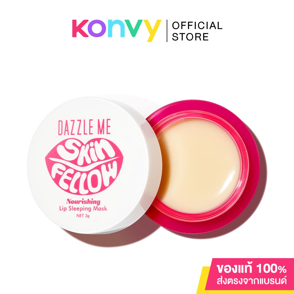 Dazzle Me Skin Fellow Nourishing Lip Sleeping Mask 3g #01 Strawberry ลิปสลิปปิ้งมาสก์ที่ช่วยฟื้นฟูและบำรุงอย่างล้ำลึก ช่วยเติมเต็มร่องริมฝีปาก เติมความนุ่มชุ่มชื่น อิ่มฟู และช่วยลดความหมองคล้ำของริมฝีปาก ทำให้ริมฝีปากอมชมพูอย่างเป็นธรรมชาติ•ฟื้นบำรุงและให้ความชุ่มชื้น