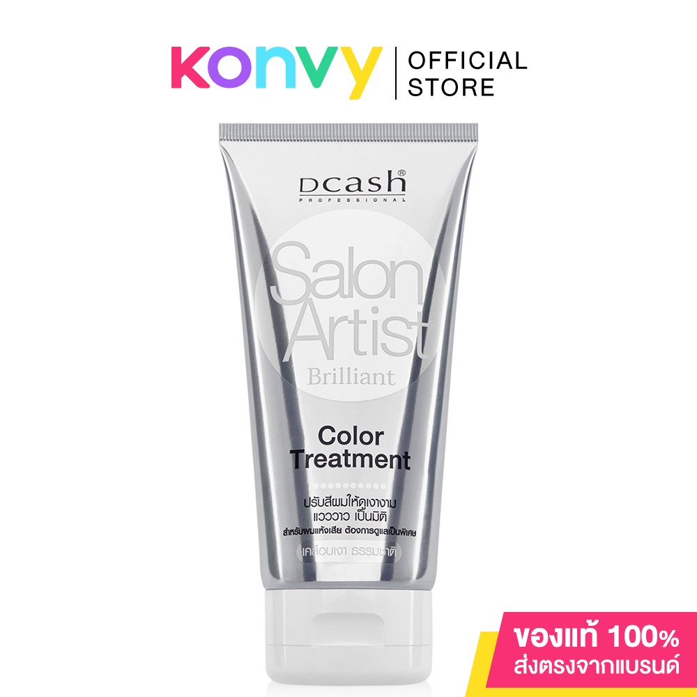 Cr.facebook.com/DcashprofessionalDcash Professional Salon Artist Brilliant Color Treatment 150ml แว็กซ์เคลือบเงาสีผม ชนิดเพิ่มความเงางาม แวววาว ให้เรือนผม สำหรับโทนสีผมธรรมชาติ ช่วยฟื้นฟูสภาพผมแห้งเสีย ด้วยอนุภาพเม็ดสีที่เล็กลงสีผมสามารถซึมเข้าแกนชั้นในได้อย่างรวดเร็วเเละง่ายดาย พร้อมพองตัวเมื่อเข้าสู่เเกนผม เพื่อให้สีผมติดทนนานมากยิ่งขึ้น และด้วยกลไกการจัดเรียงตัวของเม็ดสี ทําให้เส้นผมเพิ่มมิติแห่งการสะท้อนแสงเกิดประกายเงางามแวววาว พร้อมคุณค่าแห่งการบำรุงเส้นผมนุ่มลื่นน่าสัมผัสด้วยสารสกัดจากธรรมชาติ ผลลัพธ์พิเศษการเคลือบสีผมด้วยนวัตกรรม COLOR NANO