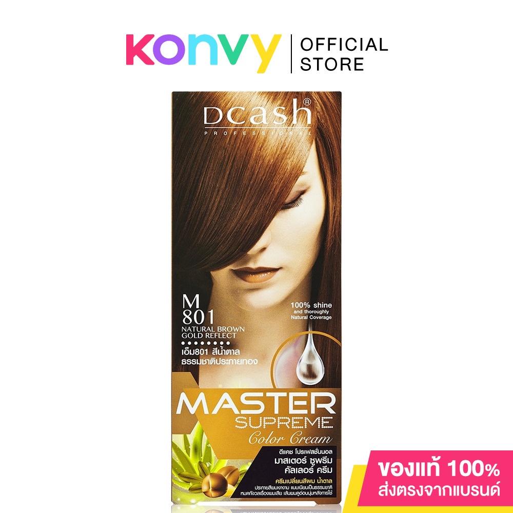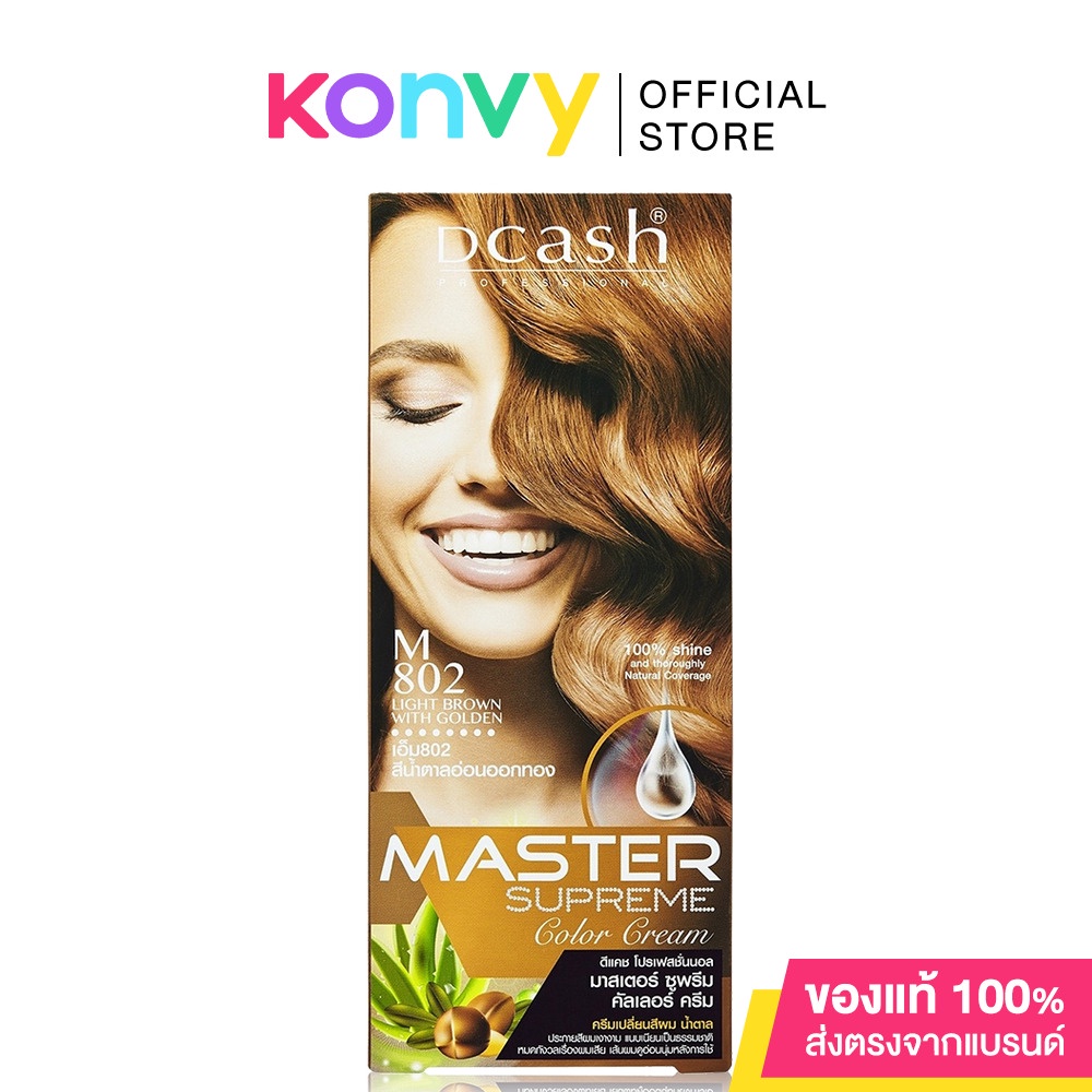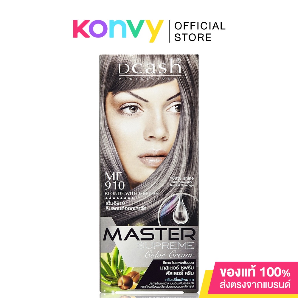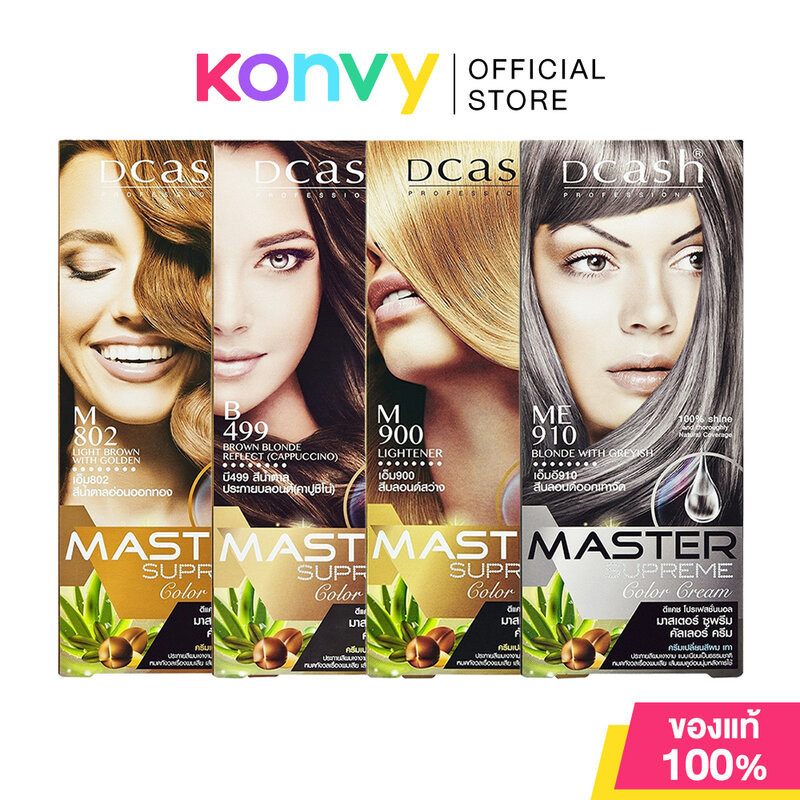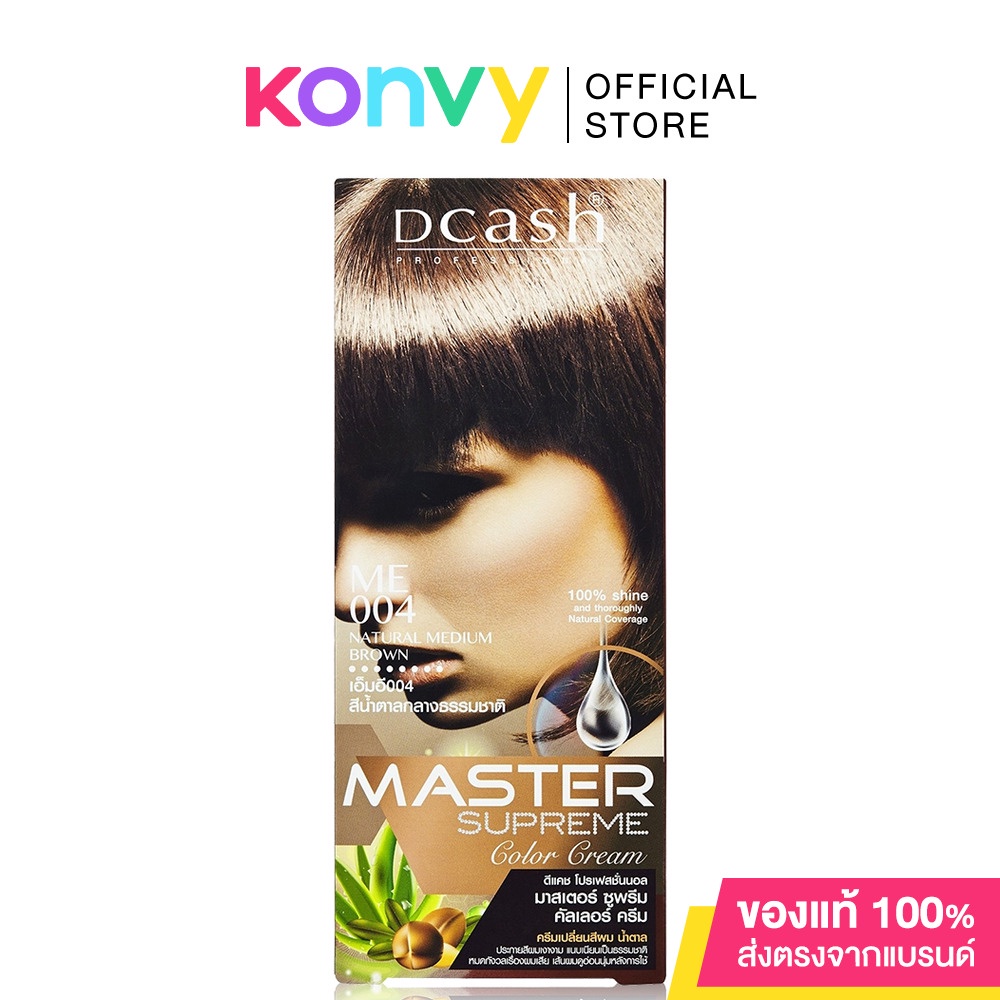 Cr. facebook.com/DcashprofessionalDcash Professional Master Supreme Color Cream 90ml ครีมย้อมผม สูตรสารสกัดจากธรรมชาติ มอบประกายสีผมเงางาม แนบเนียนเป็นธรรมชาติ เส้นผมดูอ่อนนุ่มหลังการใช้ หมดกังวลเรื่องผมเสีย ทำให้เส้นผมเงางามดั่งเคลือบแก้ว