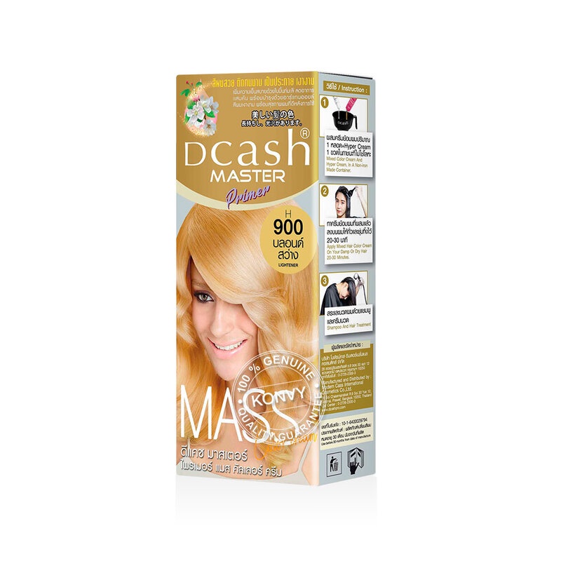 Dcash Master Primer Mass Color Cream 50mlครีมเปลี่ยนสีผม สีผมสวยตรงใจ ให้ประกายสีติดทนนาน บำรุงล้ำลึกจาก MultiFruit Essence AHA ธรรมชาติ รวบรวมสารสกัดจากธรรมชาติเข้มข้น 5 ชนิด ช่วยให้เส้นผมนุ่มลื่น เงางาม• สีผมคุณภาพมาพร้อมการบำรุง