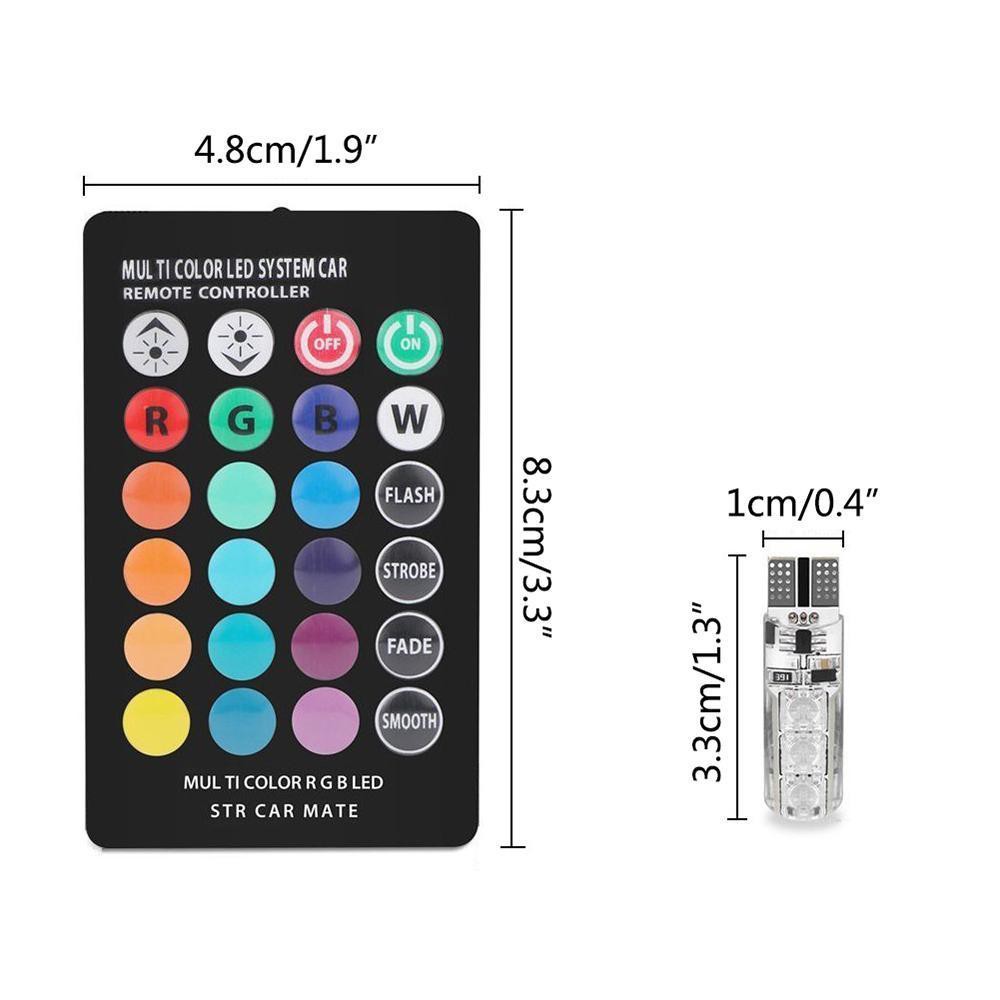 หลอดไฟหรี่รถยนต์+รถมอเตอร์ไซร์ เปลี่ยนสีได้ (ขั้ว T10) ไฟหรี่ 7 สี 17 สเต็ป พร้อมถ่าน+รีโมทหลอดไฟหรี่รถยนต์+รถมอเตอร์ไซร์DC 12 V. ควบคุมด้วยระบบรีโมทคอนโทล สามารถปรับเปลี่ยนสีได้16โทนสี17step