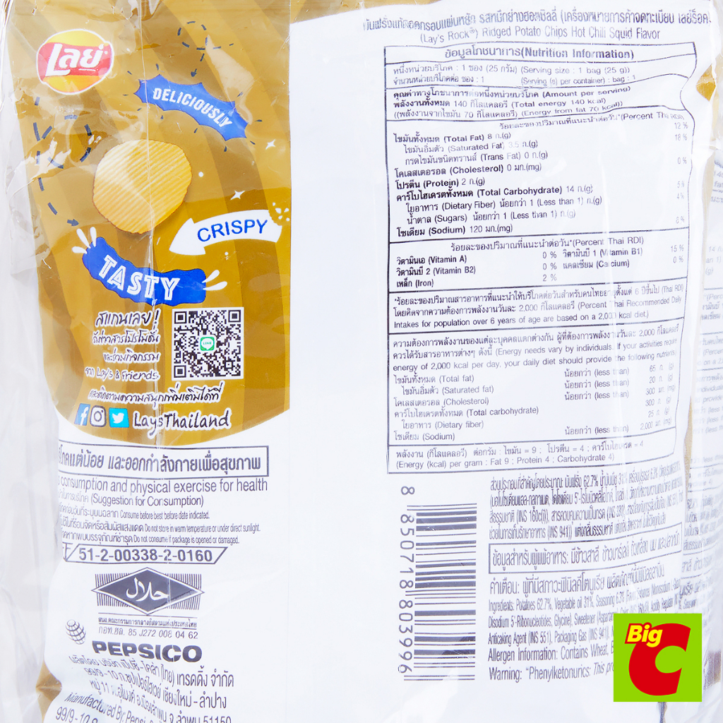 - เลย์ มันฝรั่งแผ่นหยัก รสหมึกย่างฮอตชิลลี่
