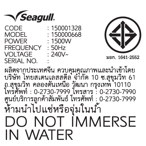 Seagull เตาไฟฟ้า (สีครีม) Electric Hot Plate (Cream)ข้อมูลสินค้า (TH)
