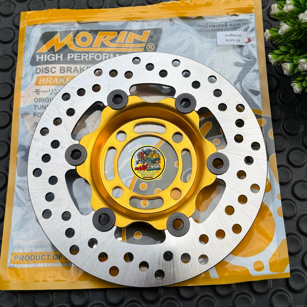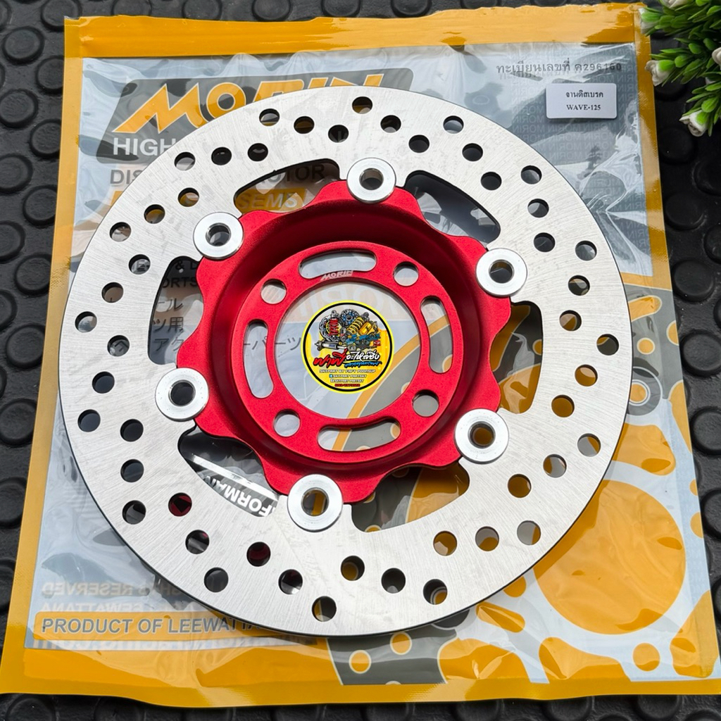 จานเบรคแต่ง เวฟ125/W125R/S/iไฟเลี้ยวบังลม220MM.ไม่ต้องใส่สเปเซอร์ จานMORINแท้ มี8สี ใส่W125R/S/iไฟเลี้ยวบังลม ดุม4รู🔥🔥