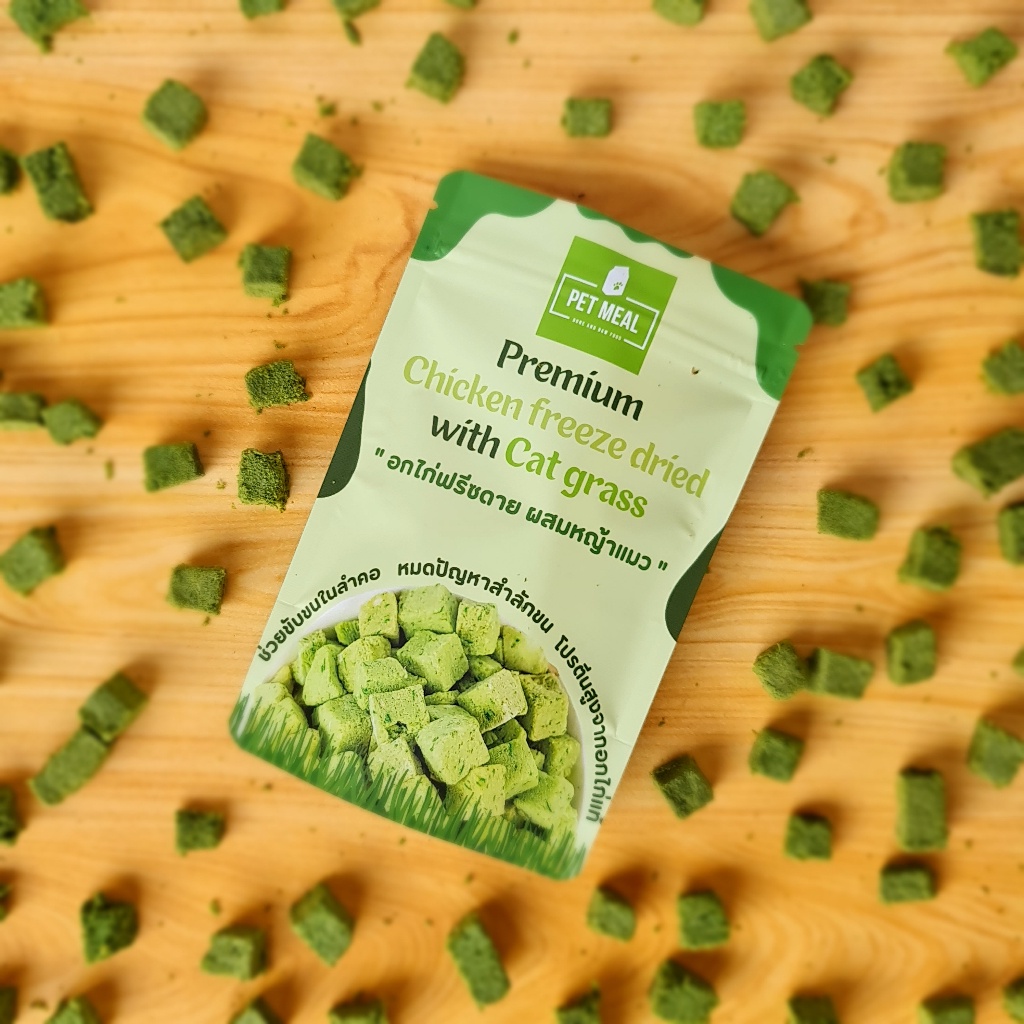 Pet Meal ขนมแมว หญ้าแมว ลดการสำลักขน ช่วยขับขนในลำคอ ขจัดก้อนขน ผสมอกไก่แท้ ขนาด 25gPET MEAL