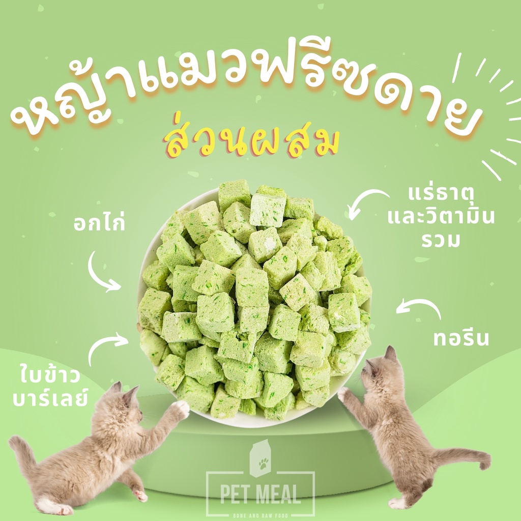 หญ้าแมวทำจากใบข้าวบาร์เลย์ และอกไก่แท้ เกรดพรีเมี่ยม Human grade ไม่ใส่วัตถุอื่นเจือปน