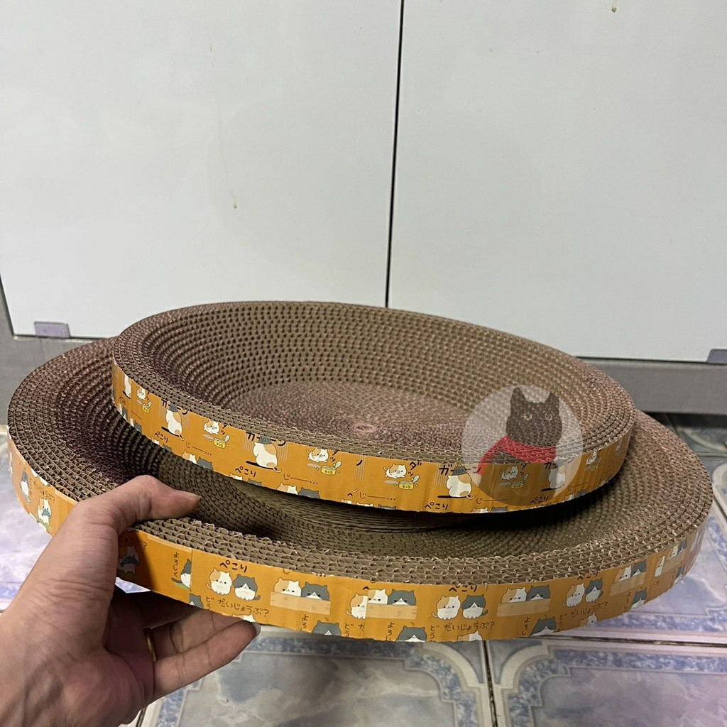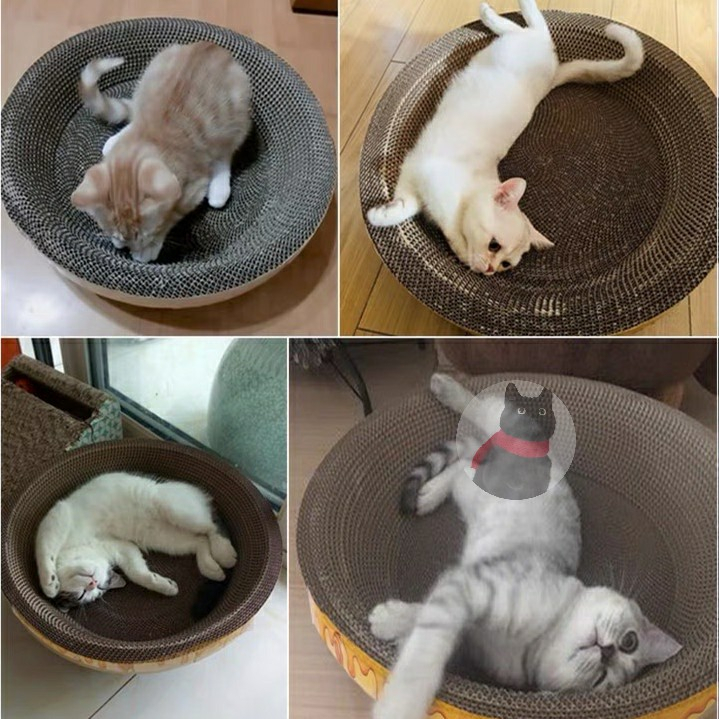 ที่ฝนเล็บรูปอ่าง เป็นที่นอนน้องแมวไปในตัวผลิตจากกระดาษลูกฟูกคุณภาพดี หนา แข็งแรง รองรับการลับเล็บของน้องได้ดี
