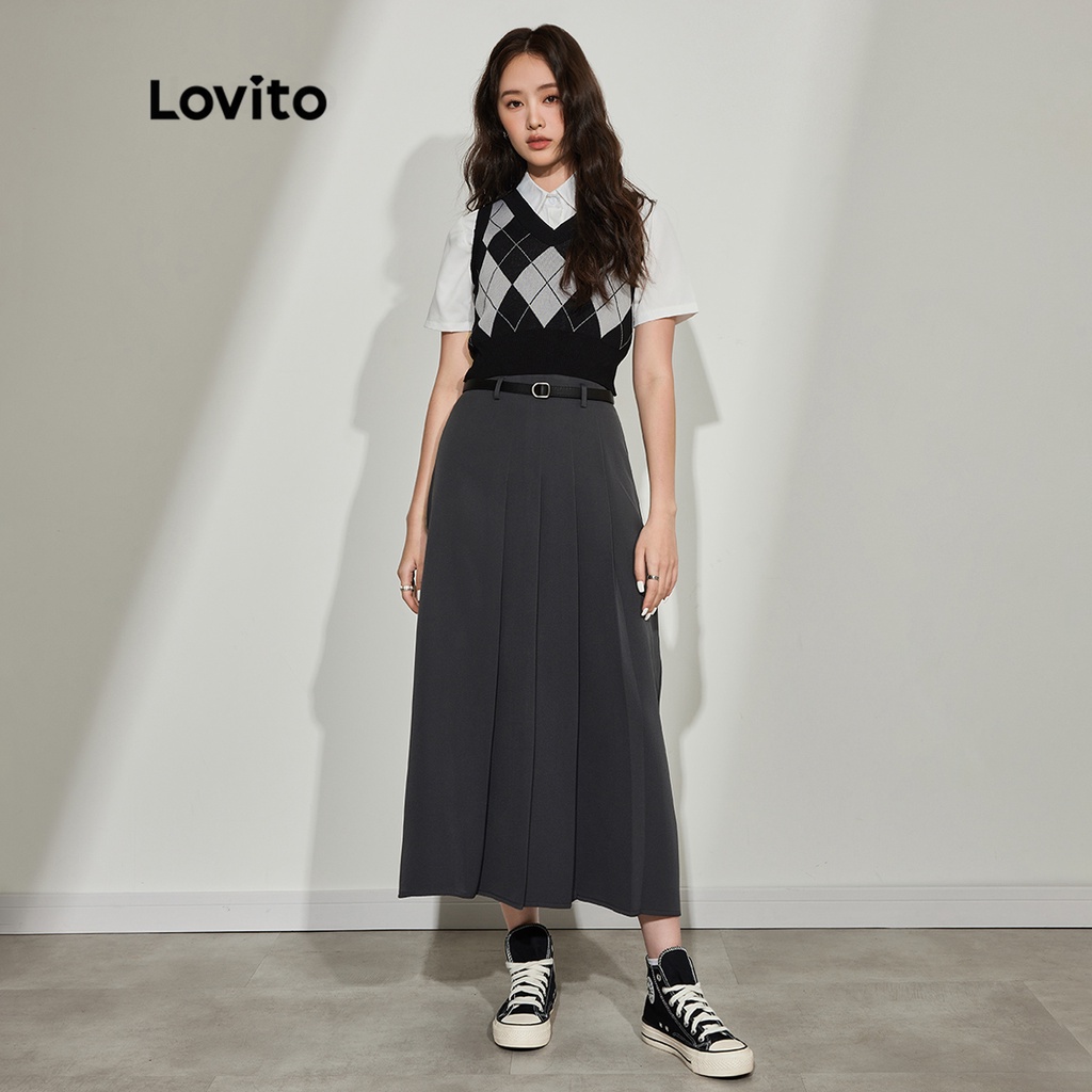 Lovito quần áo phía trước có khuy màu trơn thường ngày cho Nữ lne27211 (màu xám đậm)