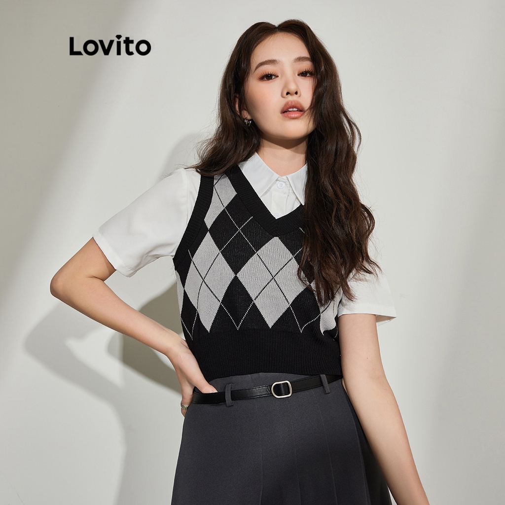 Áo chui đầu nữ dệt kim màu trơn thường ngày lovito lne21090 (Màu mơ/Trắng/Đen)