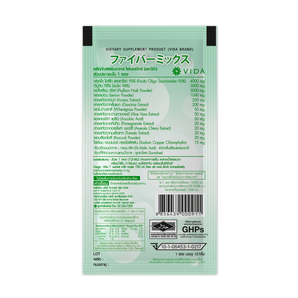 ***อายุการใช้งาน 6 เดือน***Vida FiberMix ไฟเบอร์ธรรมชาติระดับพรีเมี่ยม จากประเทศญีปุ่น พร้อมวิตามิน คลอโรฟิลล์ ผงผักและสารสกัดจากธรรมชาติ ก