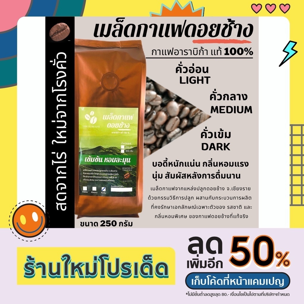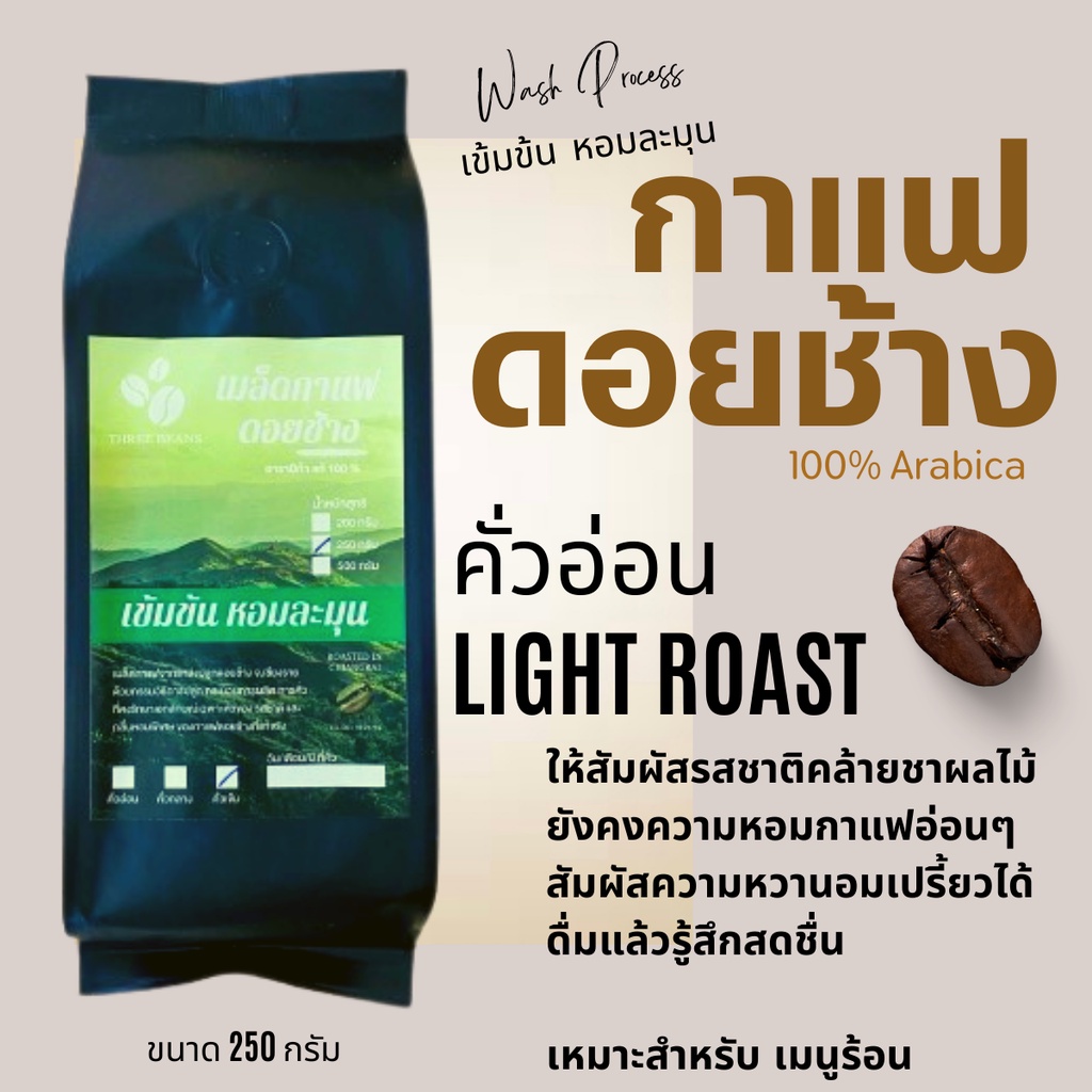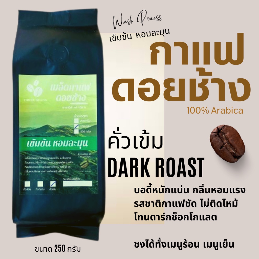✅ เมล็ดกาแฟดอยช้าง Arabica 100%