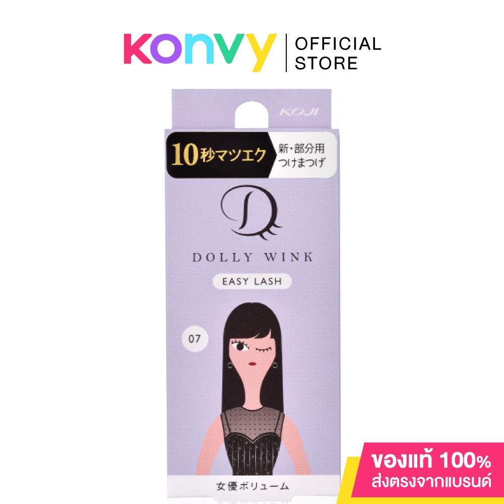 Cr..instagram.com/dolly_winkDOLLY WINK Easy Lash 1 Pair #No.7 ขนตาปลอม สุดฮิตจากประเทศญี่ปุ่น NO.07 แอคเทรซ วอลลุ่ม เน้นติดบริเวณกึ่งกลางตาถึงหางตา ขนตาเส้นหนาเรียงยาวไล่ลำดับกัน ให้ลุคดูสวยคมมีพลัง ขนตาปลอมออกแบบมาให้มีน้ำหนักเบา แกนขนตาใส ติดแล้วดูเป็นธรรมชาติ ติดง่าย เพียงทากาวที่แถมมาในกล่อง ตัวกาวแห้งไวใน 10 วินาที กันน้ำกันเหงื่อ ติดทนนานตลอดวัน