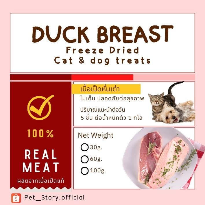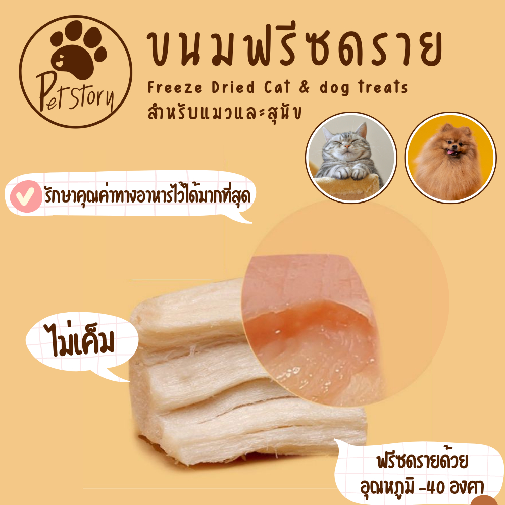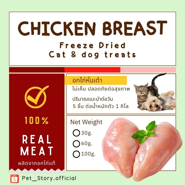 อกไก่เต๋า ขนมแมว ขนมหมา Chicken Freeze Dried [RitChi]อกไก่ มีไขมันต่ำ
