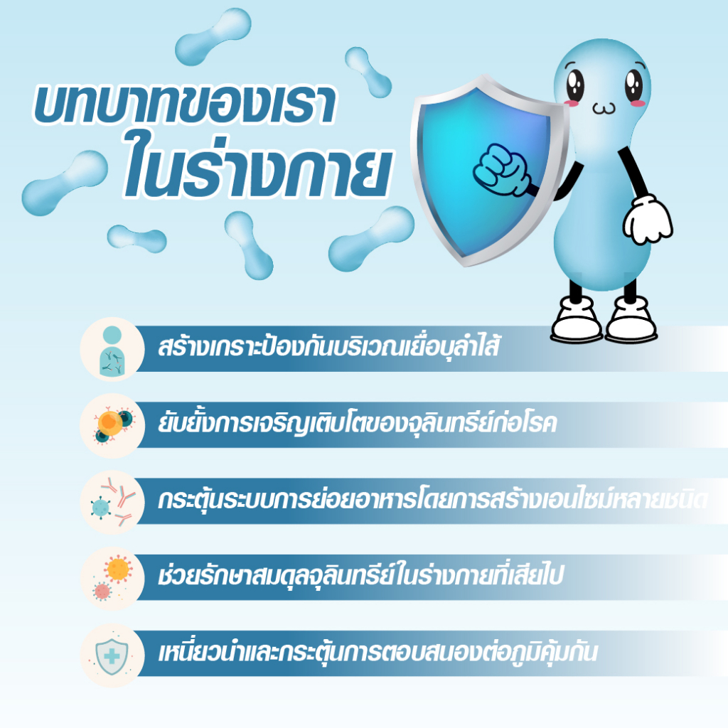 บาซิลลัส โคแอกกูแลน (โพรไบโอติกส์) : จุลินทรีย์ชนิดดีที่มีชีวิตขนาดเล็ก เมื่อรับประทานเข้าไปแล้วจะช่วยป้องกันโรคที่เกี่ยวกับกระเพาะอาหารและลำไส้โดยการเข้าจับที่บริเวณผิวของเยื่อบุลำไส้ทำให้เชื้อก่อโรคไม่สามารถจับกับผนังลำไส้ได้ เช่น ท้องเสียและลำไส้แปรปรวน และยังอาจมีบทบาทในการรักษาการติดเชื้อระบบทางเดินหายใจ นอกจากนั้นยังช่วยเรื่องยับยั้งการเจริญเติบโตของจุลินทรีย์ก่อโรค ช่วยดูดซึมสารอาหารเสริมสร้างภูมิต้านทาน ป้องกันท้องผูก ลดอาการข้างเคียงจากยาปฏิชีวะนะ ลดความเสี่ยงในการเป็นมะเร็งลำไส้