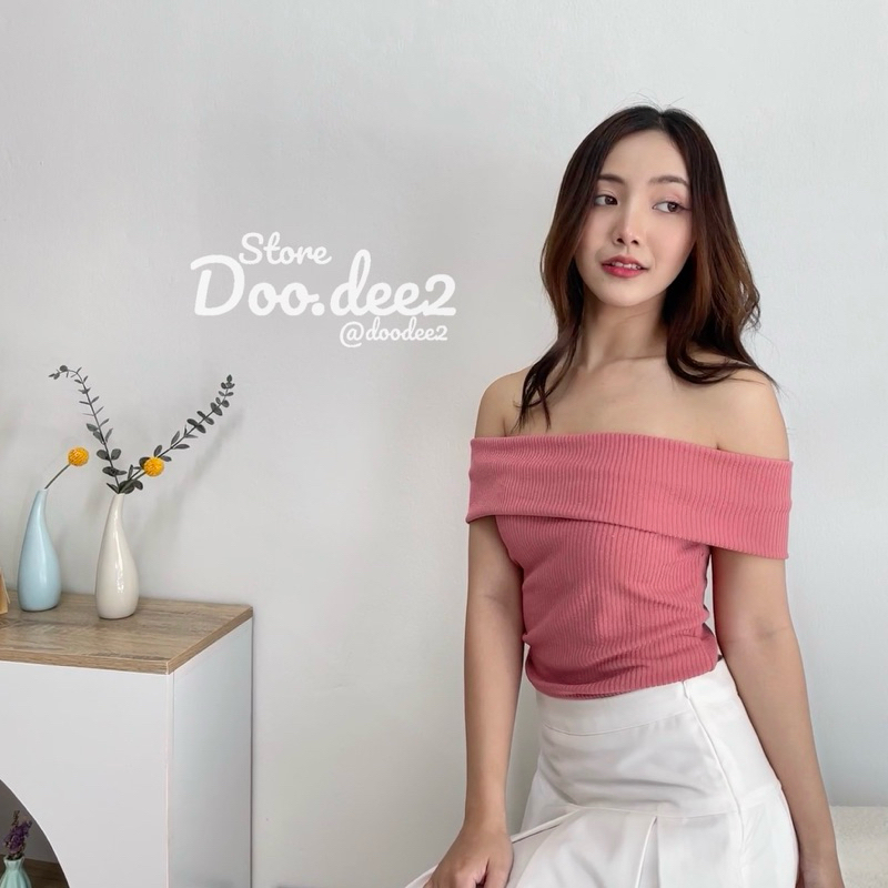 🔻รูปภาพถ่ายจากงานจริงของร้าน♦️DOODEE2♦️เสื้อปาดไหล่ พับ 2 ชั้นตรงอก ผ้าท็อปทวิล งานฮิตสุดๆ ผ้ายืดเยอะนะคะ ใส่สบายมาก