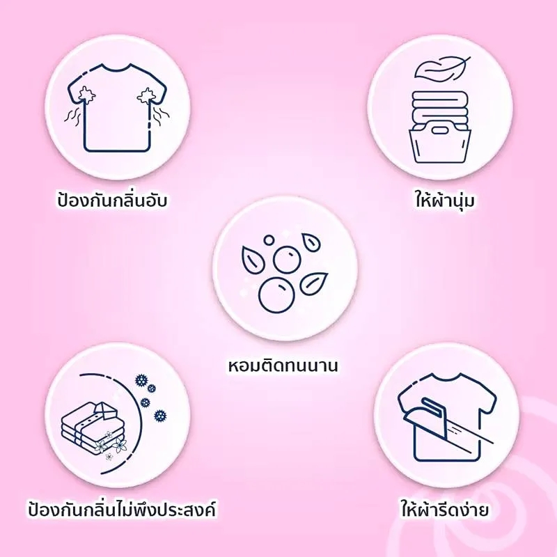 - ข้อแนะนำในการใช้ : ไม่ควรเทผลิตภัณฑ์ปรับผ้านุ่มลงบนผ้าโดยตรง
