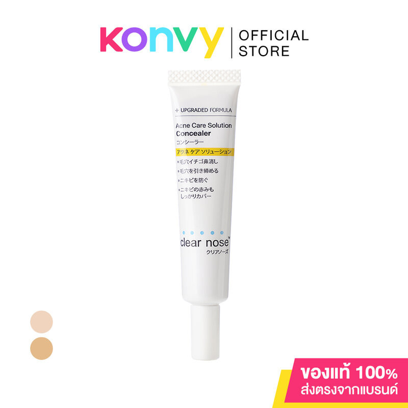 CLEAR NOSE Acne Care Solution Concealer 12gสุดยอดคอนซีลเลอร์เพื่อผิวเป็นสิว ปกปิดสิว รอยดำ รอยแดงและรอยสิวได้เป็นอย่างดี ให้ผิวที่เป็นธรรมชาติ พร้อมช่วยลดปัญหาสิวให้ยุบตัวลง เหมาะสำหรับผิวเป็นสิวง่ายและผิวแพ้ง่าย ไม่มีน้ำหอม ผลิตจากโอซาก้า ประเทศญี่ปุ่น• #101 Light Beige(สำหรับผิวขาว ผิวขาวเหลือง)