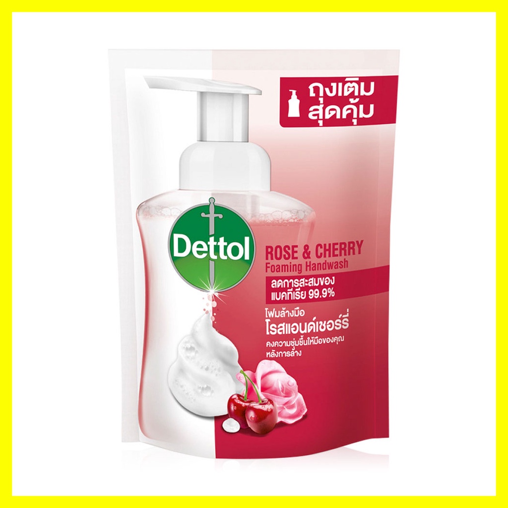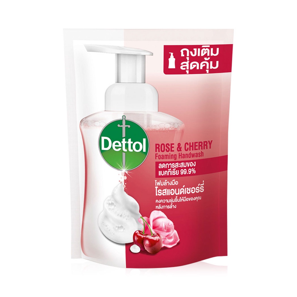 Dettol Foaming Hand Wash Rose & Cherry Refill 200mlโฟมล้างมือแบบถุงชนิดเติม สูตรโรสเชอรี่ ช่วยให้มือสะอาดอย่างมีอนามัย ดูสุขภาพดี ด้วยเนื้อโฟมอ่อนนุ่ม กระจายตัวได้อย่างทั่วถึง เเละชำระล้างและลดการสะสมของแบคทีเรีย 99.9% พร้อมช่วยให้มือของคุณนุ่มนวลเเละสะอาดตลอดวัน• ช่วยให้มือสะอาดอย่างมีอนามัย ดูสุขภาพดี