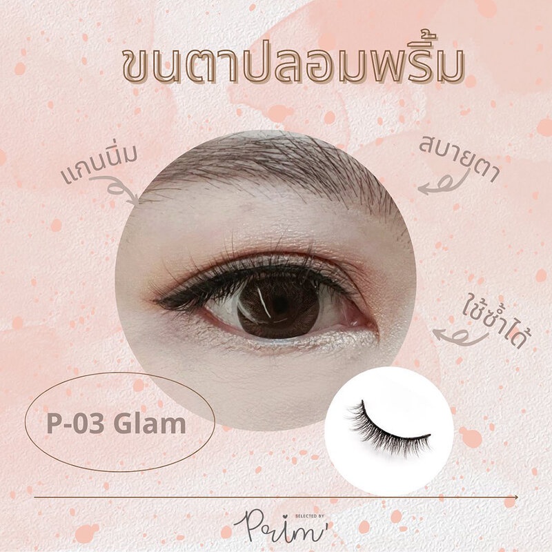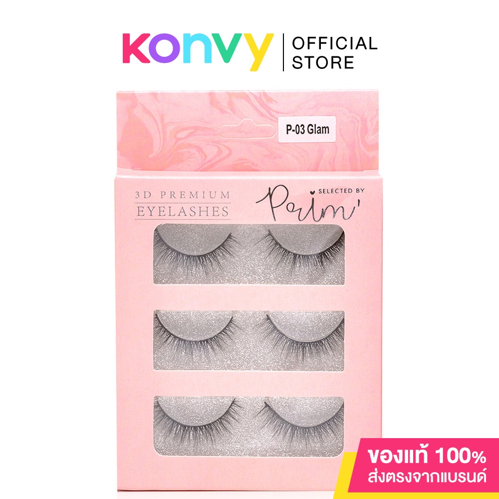 Selected by Prim' 3D Premium Eyelashes 3 Pairs #P-03 Glam ขนตาปลอมสามมิติ "พริ้ม" เป็นขนตาปลอมคุณภาพสูง เส้นขนตาเรียวบาง มีลักษณะเรียงเส้นซ้อนฟู เหมือนขนตาธรรมชาติ ก้านนิ่มสามารถดัดเข้ารูปกับตาได้ง่าย มีความทนทาน สามารถทำความสะอาดแล้วนำมาใช้ซ้ำได้• ขนตาปลอมคุณภาพสูง