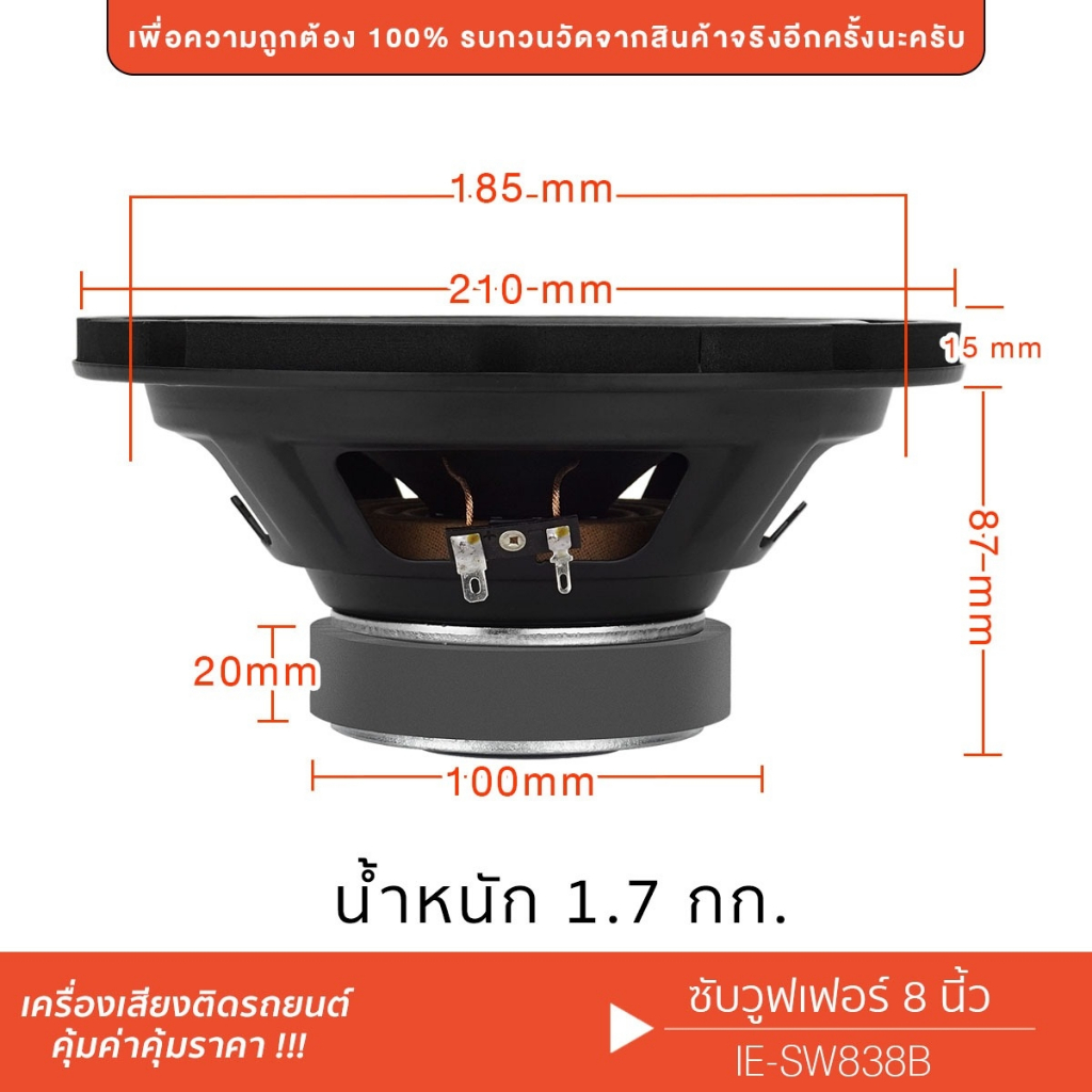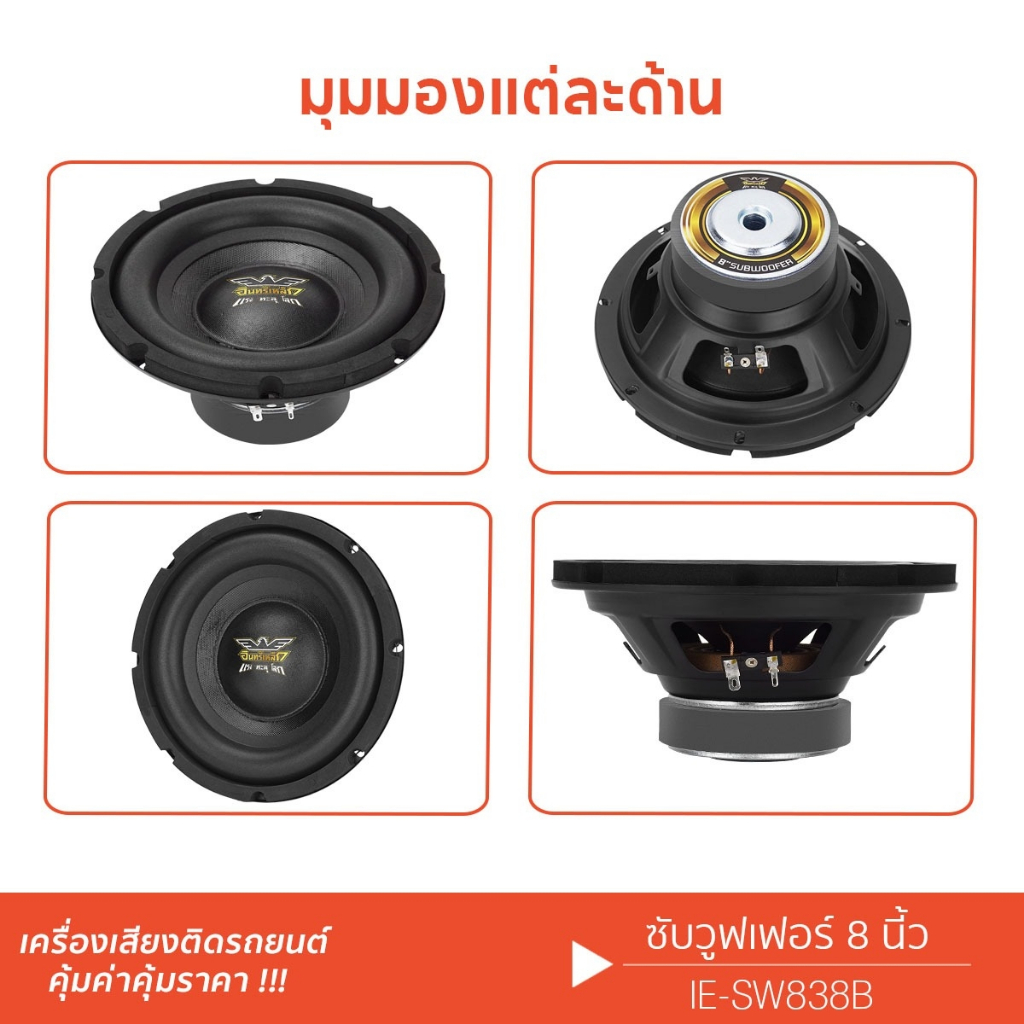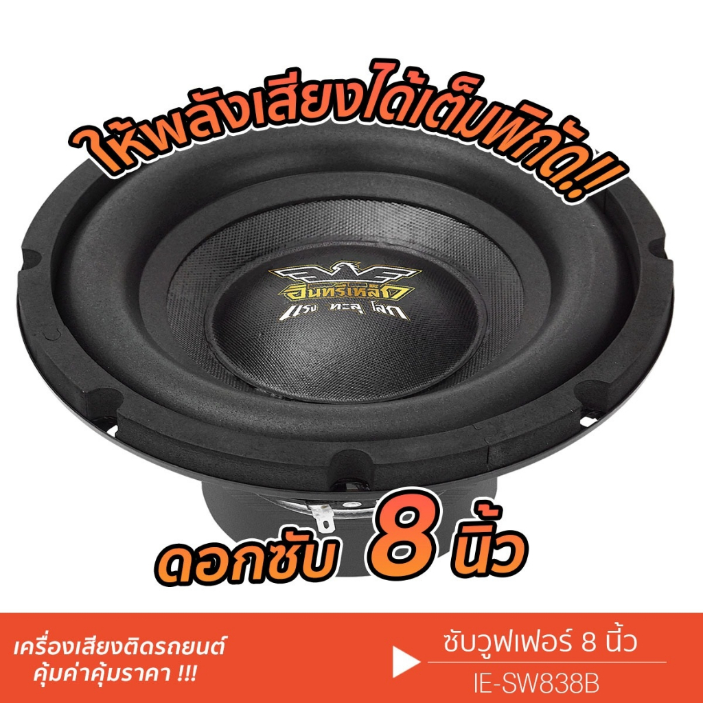 อินทรีเหล็ก ลำโพงซับวูฟเฟอร์ 8นิ้วเบส ชุดเครื่องเสียงรถยนต์ 1ดอก แม่เหล็ก100 หนา20 เหล็กปั๊ม วอยซ์เดี่ยว IE-SW838B ดอกลำโพง 838IE-SW838B