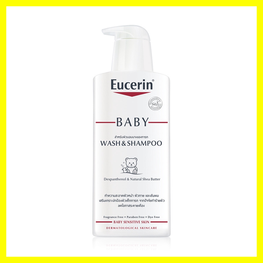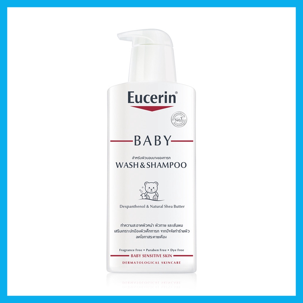 Eucerin Baby Wash & Shampoo 400ml ผลิตภัณฑ์ทำความสะอาดผิวหน้า ผิวกาย และเส้นผมของเด็กทารก ช่วยทำความสะอาดผิวบอบบางของเด็กทารก ตั้งแต่ศีรษะจรดปลายเท้า ไม่เพียงทำความสะอาด แต่ยังปกป้องผิวบอบบางของทารก ด้วยสูตรที่อ่อนโยนแต่มีประสิทธิภาพ ผสานเด็กซ์แพนทีนอล และเชีย บัทเทอร์ เพื่อผิวและเส้นผมที่นุ่ม และดูมีสุขภาพดี• ช่วยทำความสะอาดผิวบอบบางของเด็กทารก