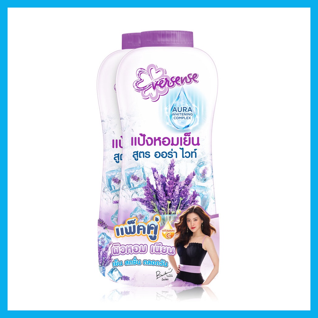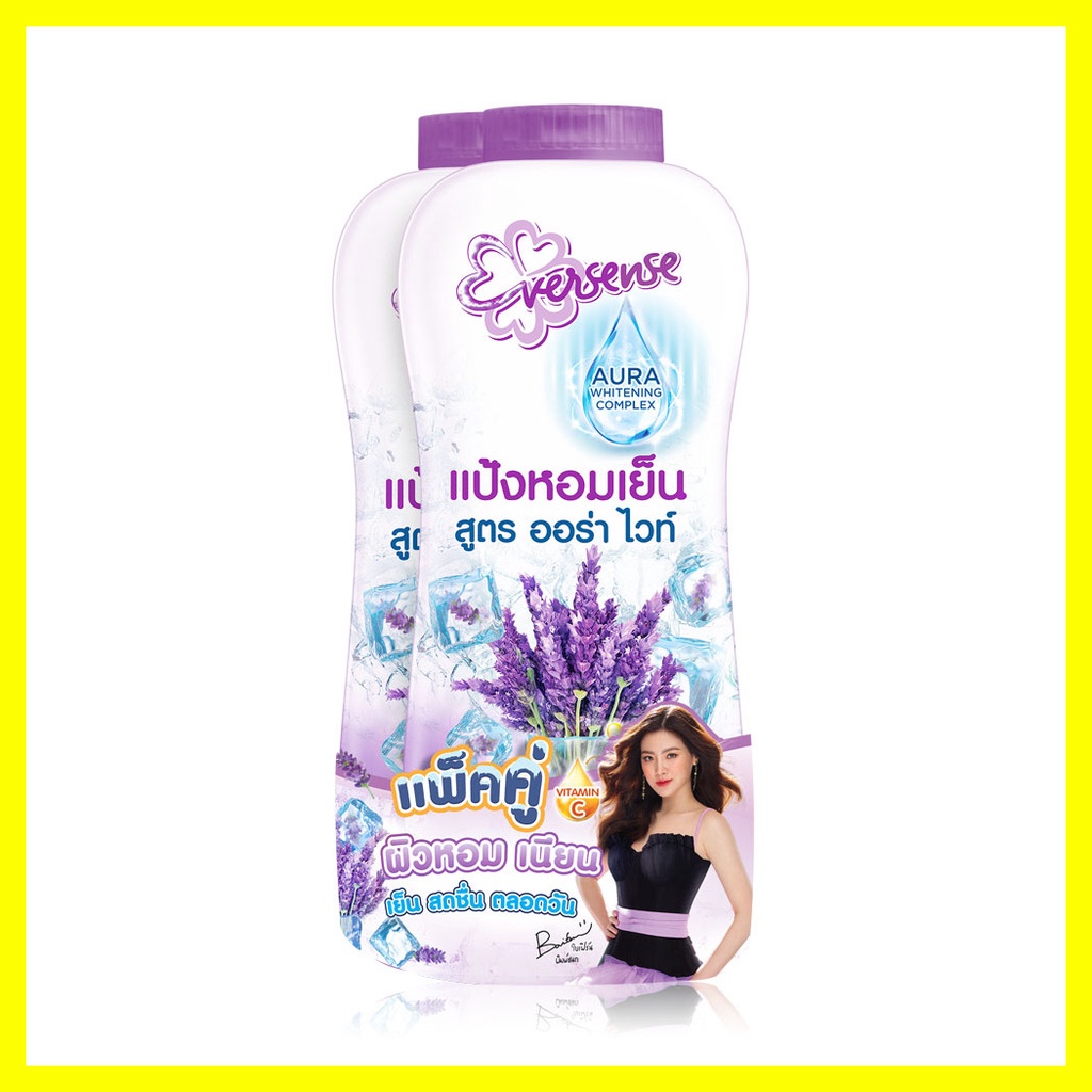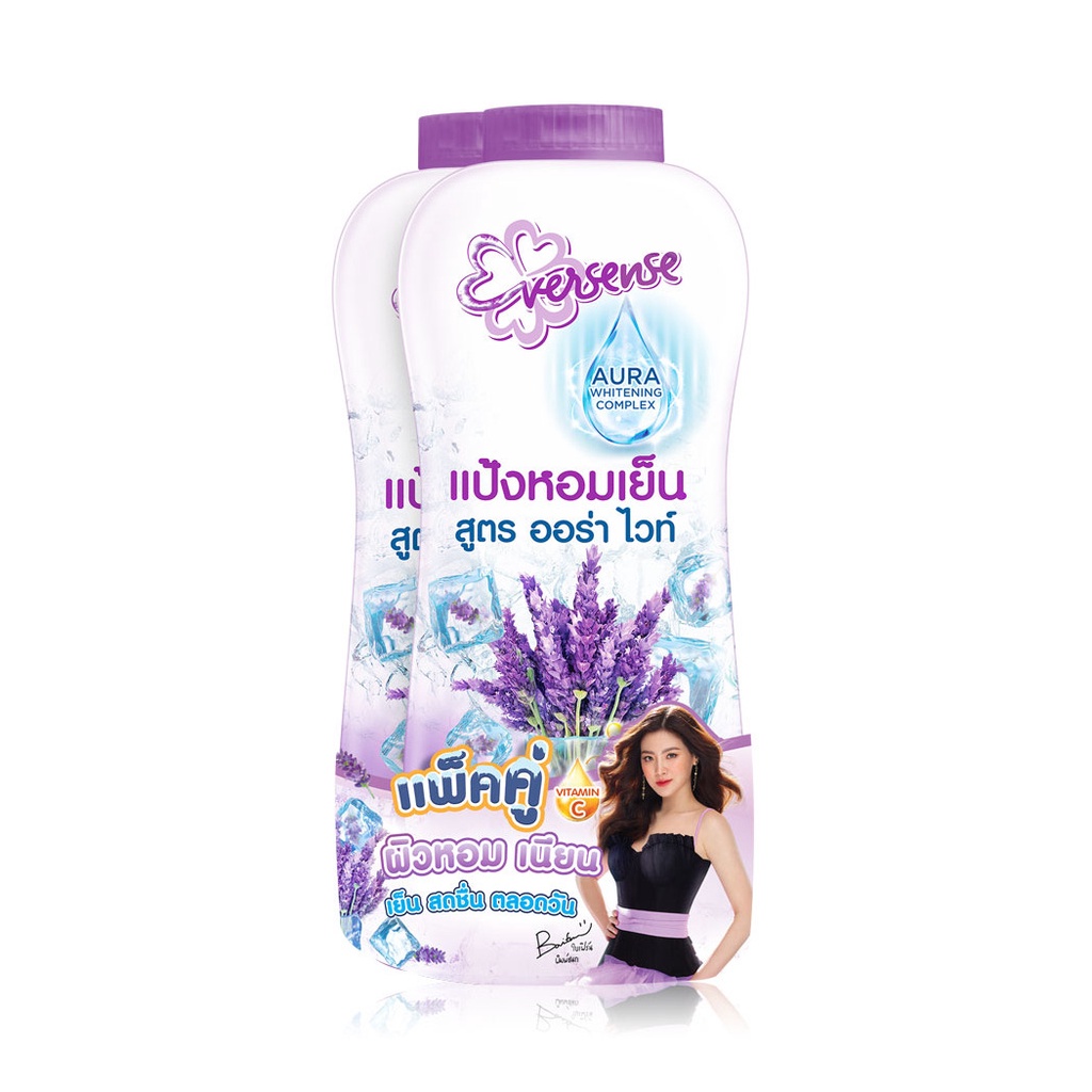 Eversense Aura White Cooling Powder [280g x 2pcs] #Violetแป้งหอมเย็นสูตรออร่าไวท์ กลิ่น Violet ให้ผิวเนียน ขาว เย็นสบาย หอม สดชื่น ตลอดวัน• ให้ผิวเนียน ขาว