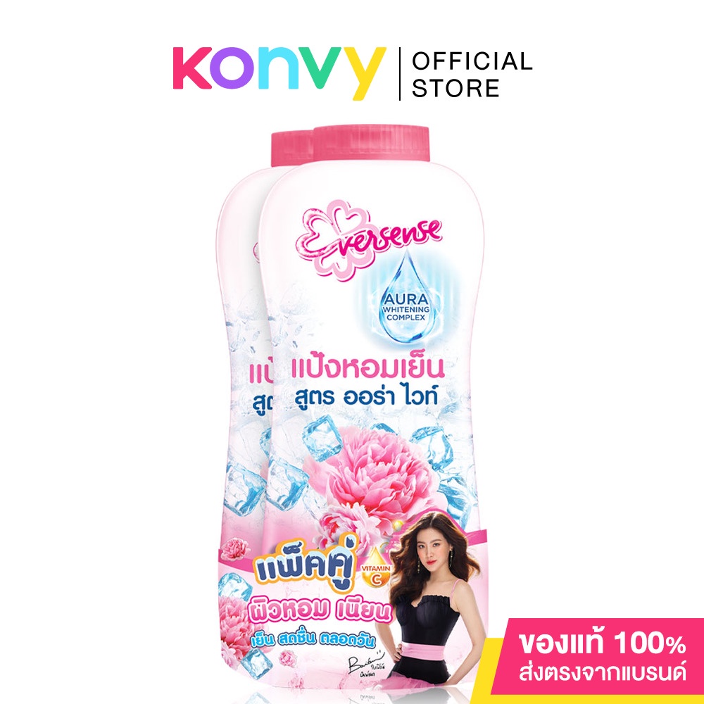 Eversense Aura White Cooling Powder [280g x 2pcs] Pink/Violetแป้งหอมเย็นสูตรออร่าไวท์ให้ผิวเนียน ขาว เย็นสบาย หอม สดชื่น ตลอดวัน• ให้ผิวเนียน ขาว