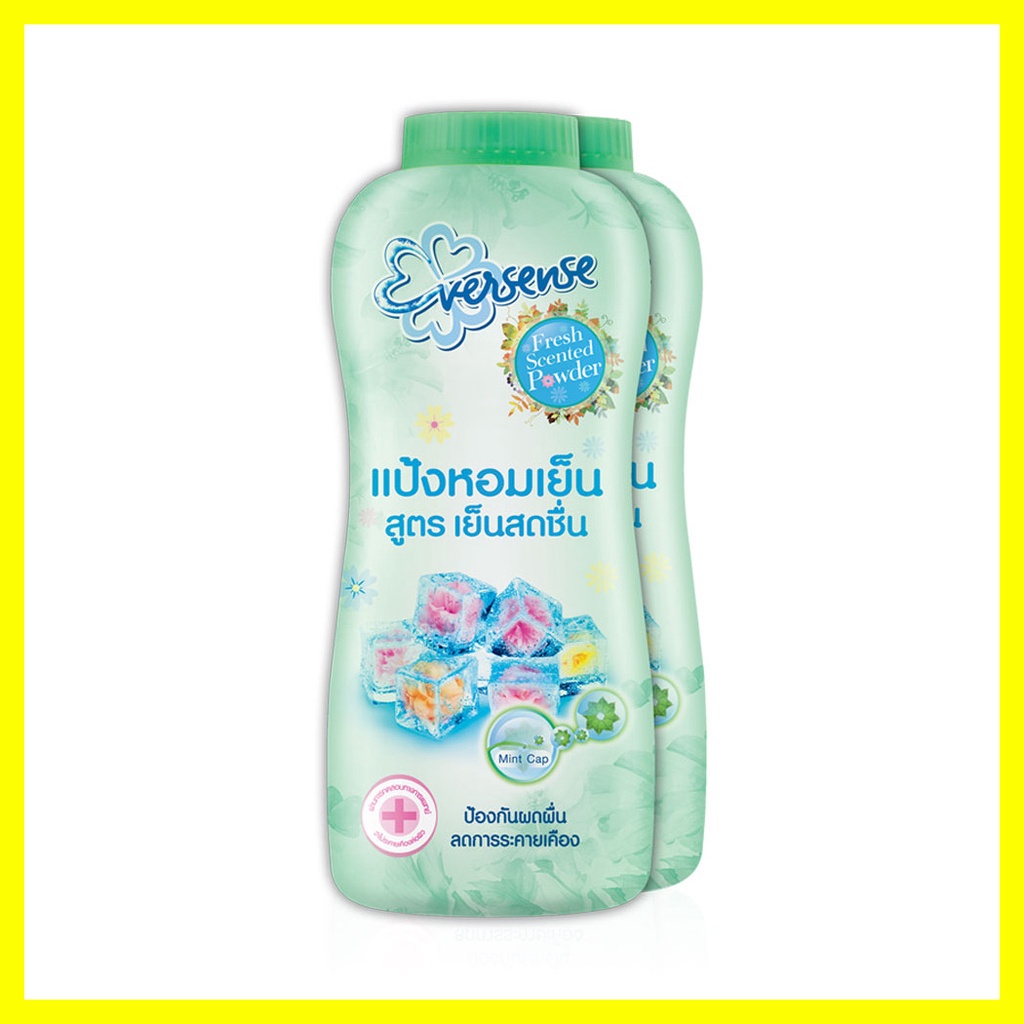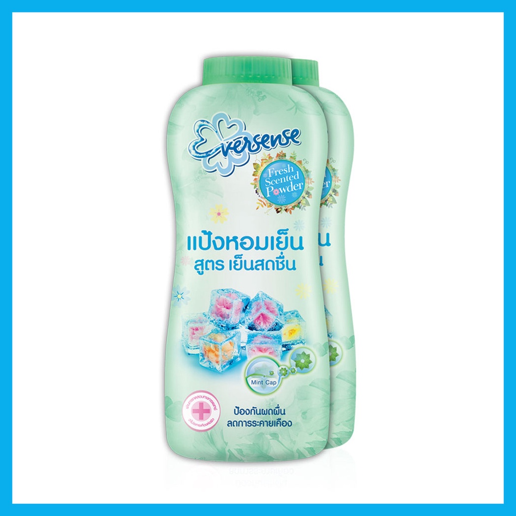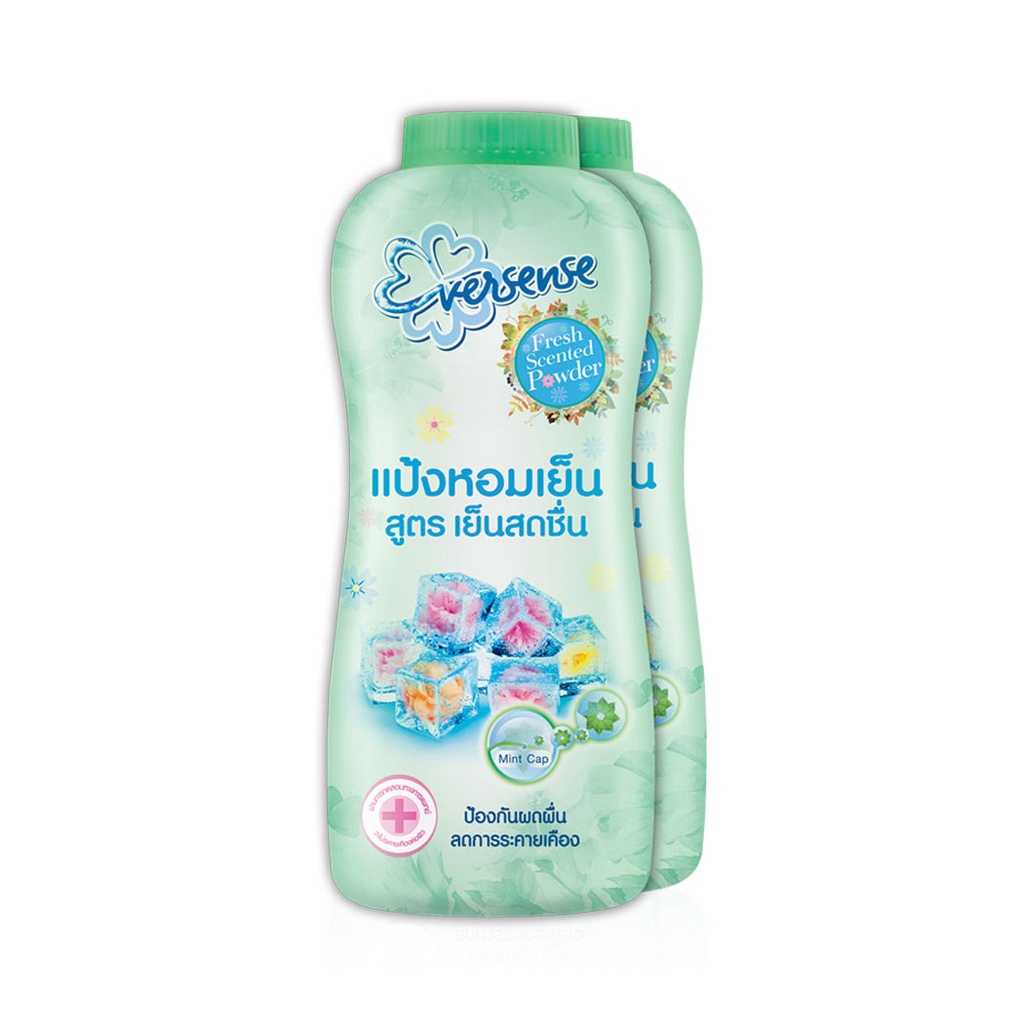 Eversense Fresh Scented Cooling Talcum [280g x 2pcs] #Greenแป้งหอมเย็นสีเขียว มีมินท์แคปซูล ช่วยกระจายความหอม ให้ความเย็นสดชื่นได้ตลอดวัน แถมยังมี Allantoin ช่วยลดผดผื่น ได้รับการรับรองแล้วว่าอ่อนโยนต่อผิว เหมาะกับผิวแพ้ง่าย จากการทดสอบทางการแพทย์ผิวหนัง• หอมนาน ด้วยเทคโนโลยีมินท์แคปซูล แตกตัวกระจายความหอม ให้ผิวกายหอมสดชื่น เย็นสบายตลอดทั้งวัน