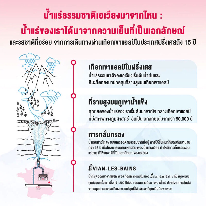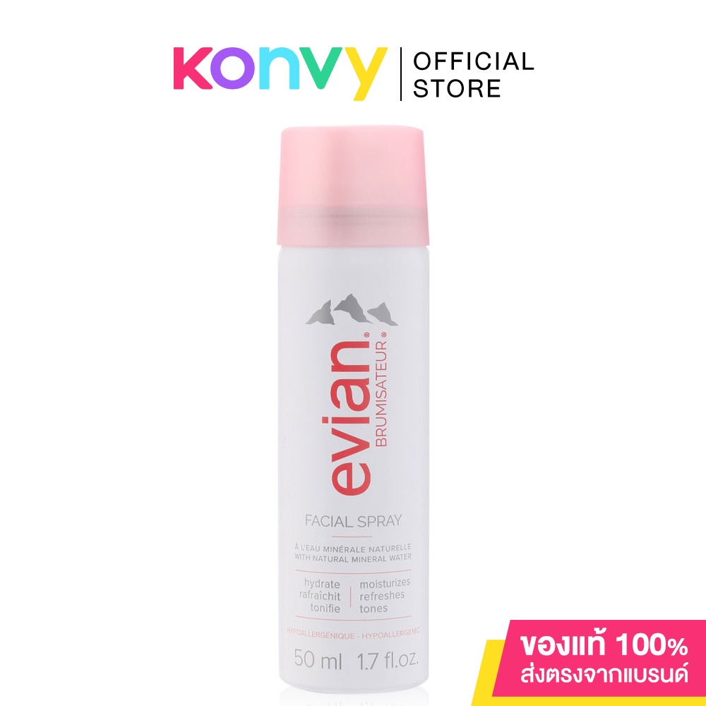 Evian Facial Spray 50mlสเปรย์บำรุงผิวหน้า บริสุทธิ์จากน้ำแร่ธรรมชาติเอเวียง เทือกเขาแอลป์ ประเทศฝรั่งเศส ใช้แล้วผิวชุ่มชื้น เหมาะกับทุกสภาพผิว แม้แต่ผิวที่บอบบาง หรือแพ้ง่าย• สเปรย์น้ำแร่ธรรมชาติ 100% เอเวียง บริสุทธิ์จากน้ำแร่ธรรมชาติเอเวียง เทือกเขาแอลป์ ประเทศฝรั่งเศส