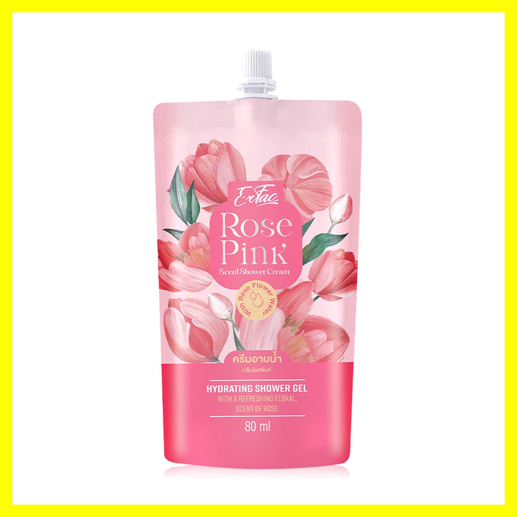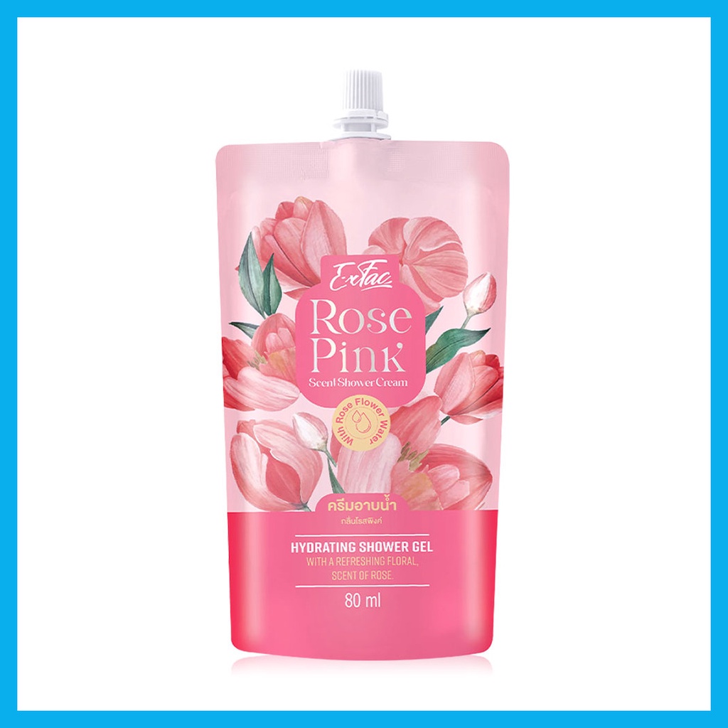 EXFAC Rose Pink Scent Shower Cream 80mlผลิตภัณฑ์ครีมน้ำทำความสะอาดผิวกาย ช่วยขจัดสิ่งสกปรกออกจากผิวกายให้สะอาด กลิ่นหอมแนวดอกไม้ สดใส มีชีวิตชีวา พร้อมทั้งบำรุงผิวกายด้วยคุณค่าจากสารสกัดดอกกุหลาบ ที่ช่วยบำรุงผิวและปลอบประโลมผิวให้เนียนนุ่ม ชุ่มชื้น แลดูสุขภาพดีอย่างเป็นธรรมชาติ• เหมาะสำหรับทุกสภาพผิว