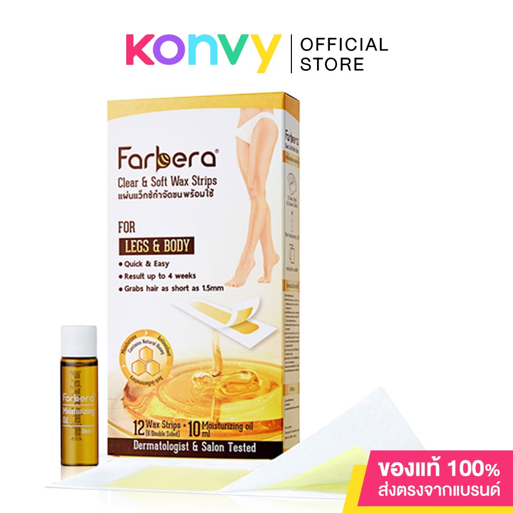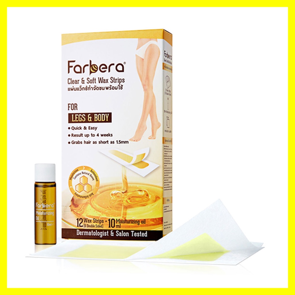 Farbera Clear & Soft Wax Strips [For Legs & Body] [12pcs/Box]แผ่นแว็กซ์กำจัดขน ฟาร์บีร่า เคลียร์ แอนด์ ซอฟท์ ใช้งานง่าย สะดวกรวดเร็วและแสดงผลลัพธ์การกำจัดขนได้อย่างมืออาชีพ ด้วยแผ่นแว็กซ์พิเศษเฉพาะของ ฟาร์บีร่า ที่มีผิวสัมผัสนุ่มนวลต่อผิวไม่ใช้สารเคมีในการฟอกแผ่นแวกซ์ กำจัดขนอย่างอ่อนโยนและเกลี้ยงเกลา ด้วยน้ำผึ้งธรรมชาติของ ฟาร์บีร่าแผ่นแว็กซ์กำจัดขน ถอนขนถึงรากถึงโคน ง่ายๆเพียง ลอก-แปะ-ดึง