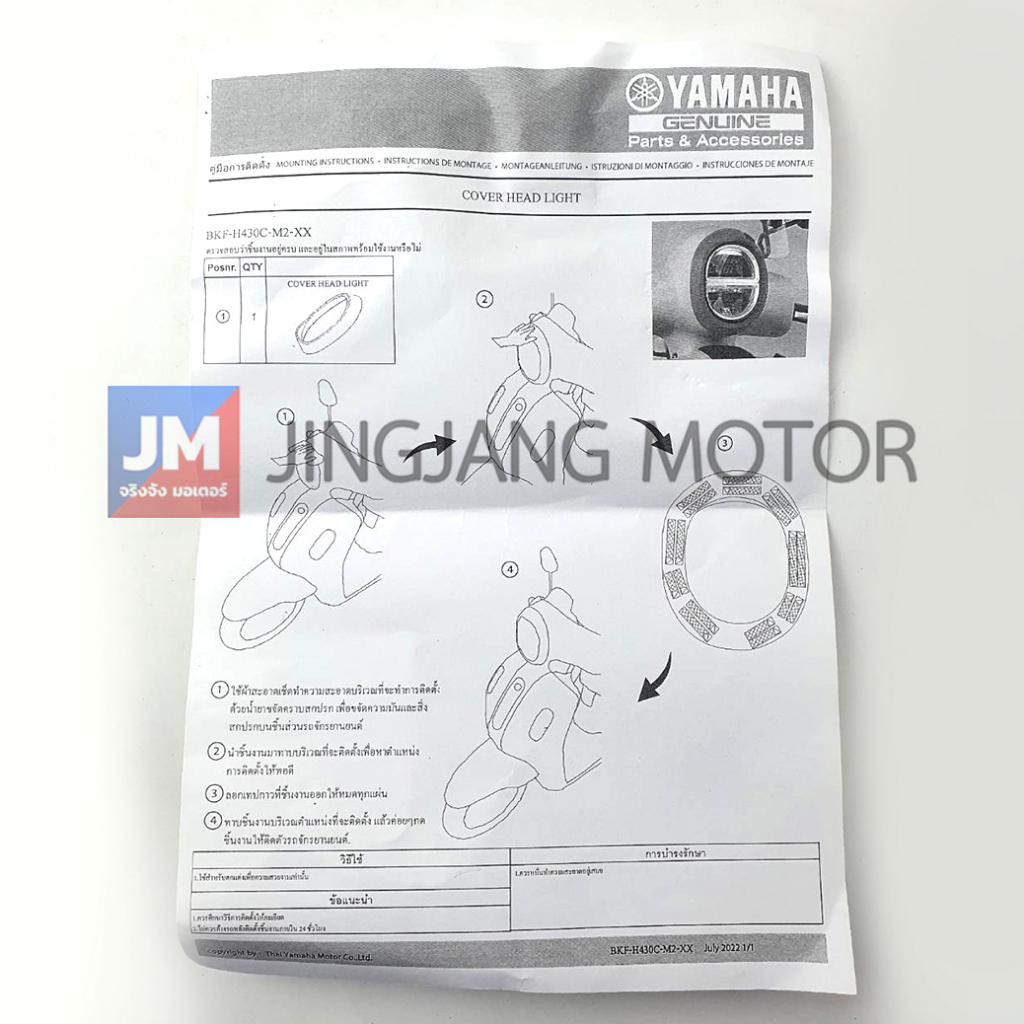 ฝาครอบไฟหน้า FAZZIO มีกาวในตัว headlight cover เเท้ศูนย์ YAMAHA ฟาซซิโอ้BKFH430CM2BL ฝาครอบไฟหน้าสีดำ FAZZIO
