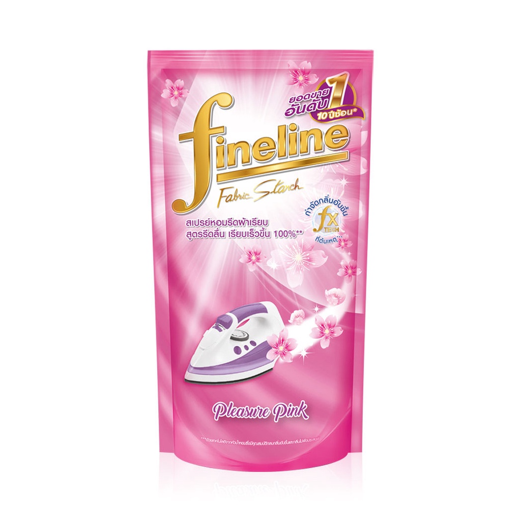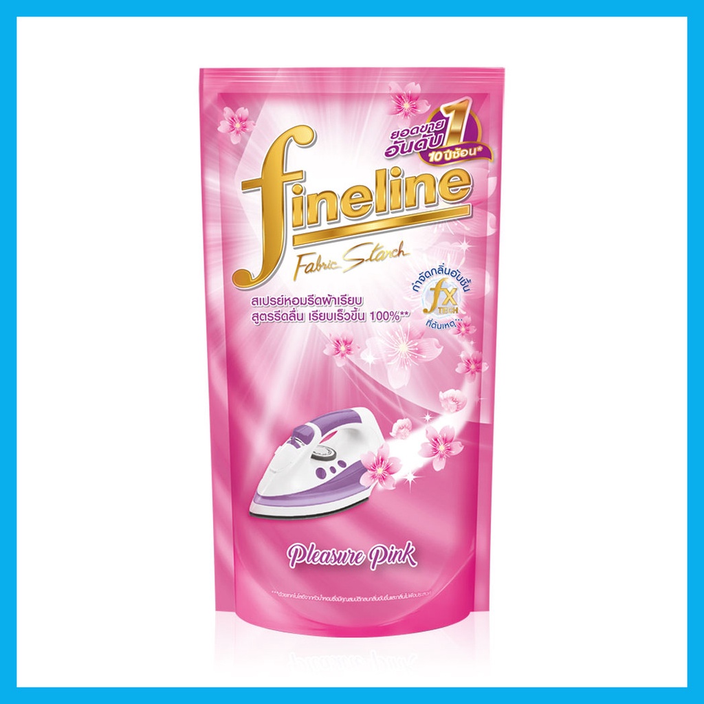 Fineline Fabric Smooth Starch Refill Pleasure Pink 500mlสเปรย์หอมรีดผ้าเรียบสูตรสมาร์ทโพเทคชั่นชุดสวยเรียบนานเหมาะสำหรับผ้าทุกประเภทไม่ว่าจะเป็นผ้าที่รีดยากทั้งเสื้อกางเกงกระโปรงผ้าลินินผ้าคอตตอนหรือผ้าที่ต้องการการถนอมเป็นพิเศษอย่างผ้าไหมผ้าชีฟองผ้าฝ้ายผ้าจากเส้นใยธรรมชาติ•ทำให้ผ้าเรียนนานไม่คืนตัว