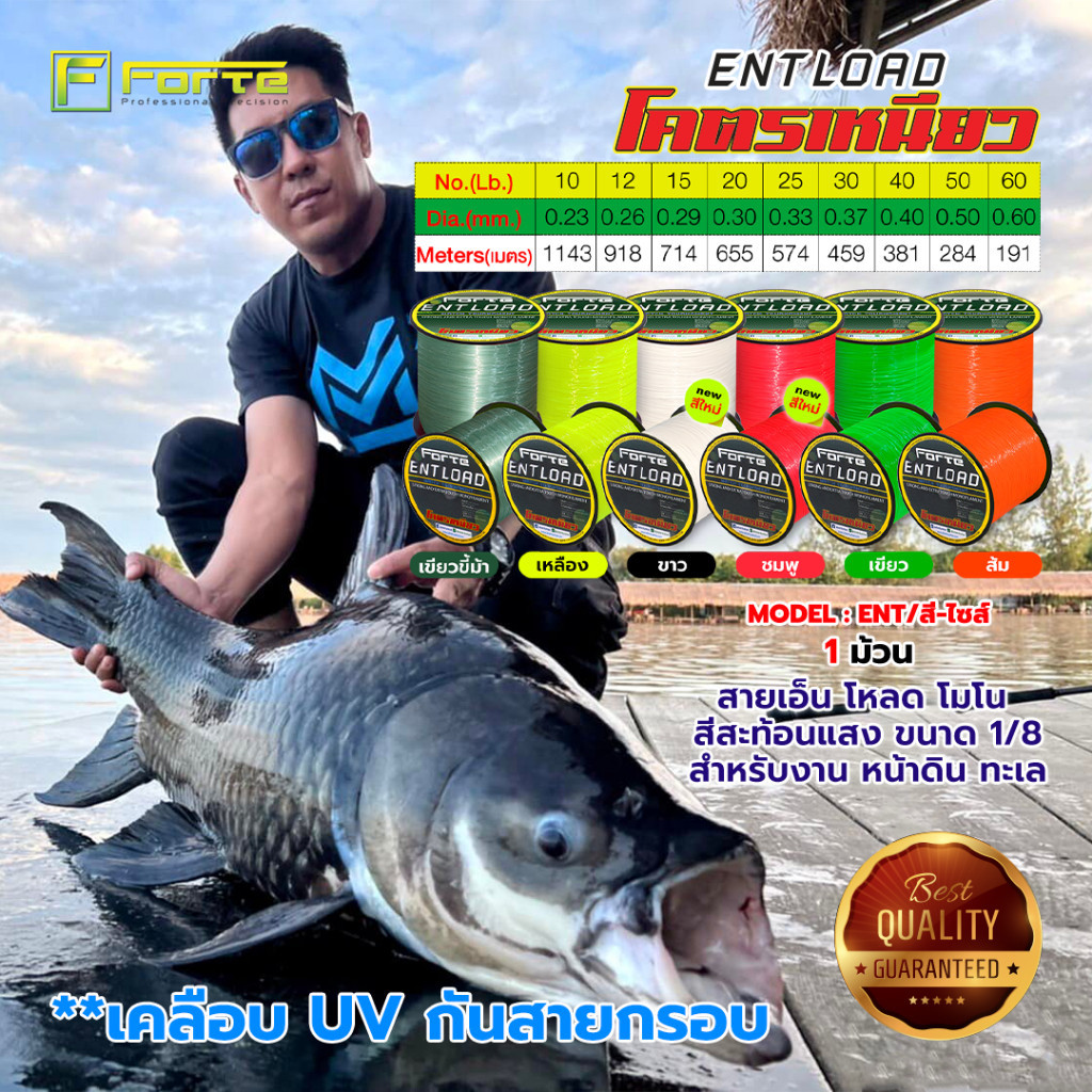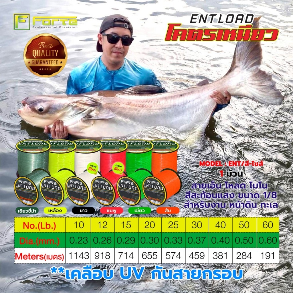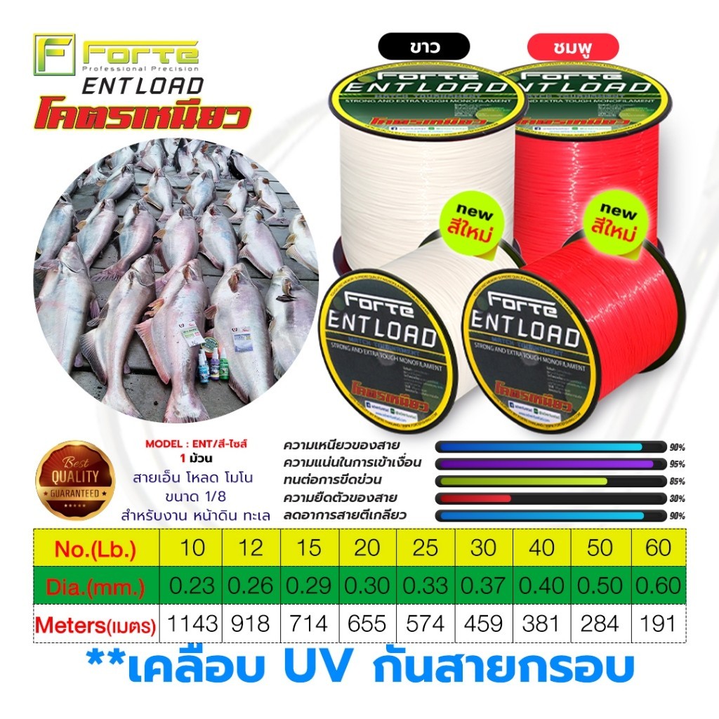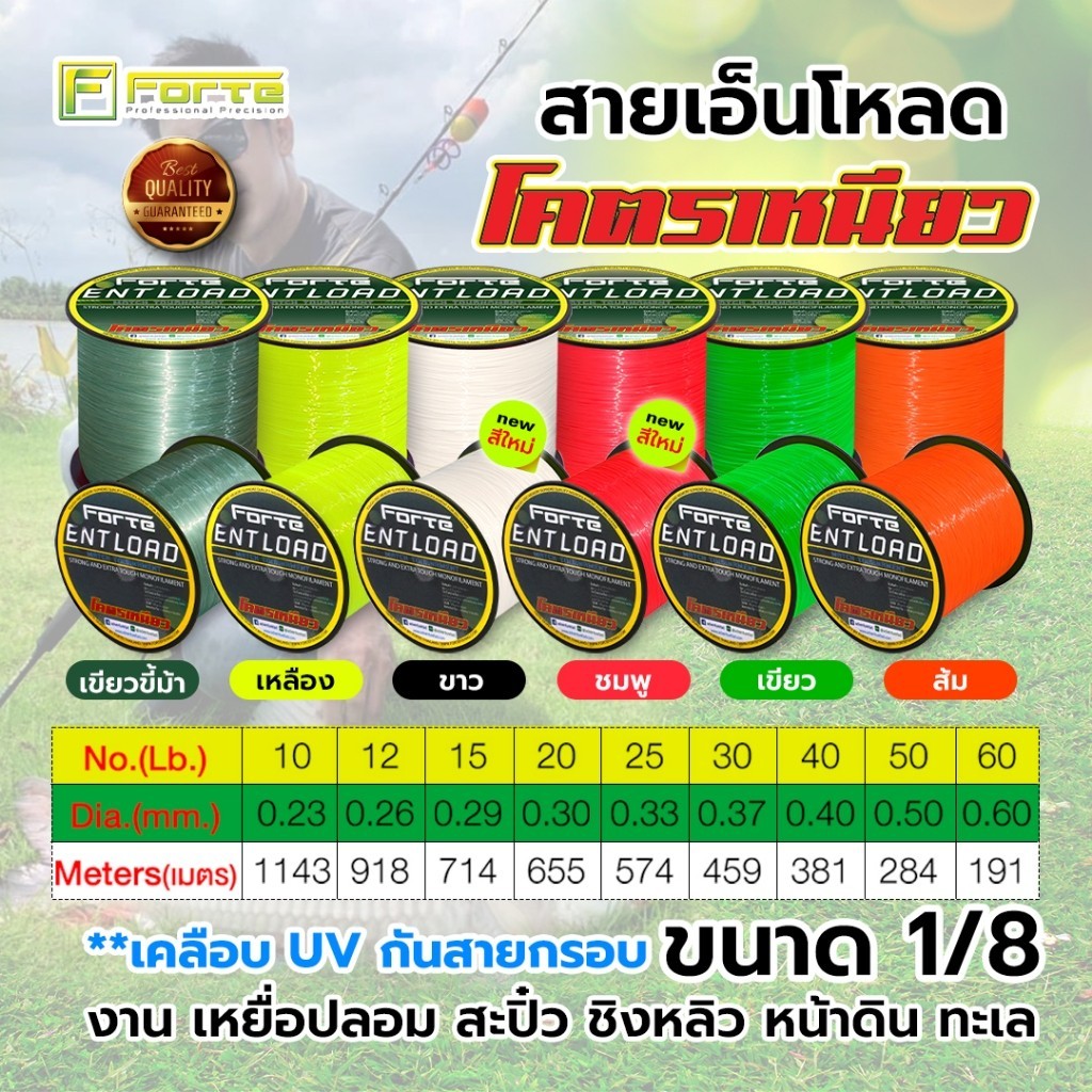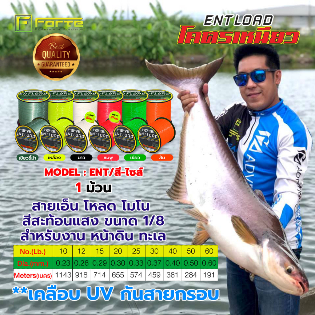รายละเอียดสินค้า : สายเอ็นโหลด ENT โมโน สีสะท้อนแสง ขนาด 1/8 สำหรับงาน หน้าดิน ทะเลชื่อรุ่น : ENT