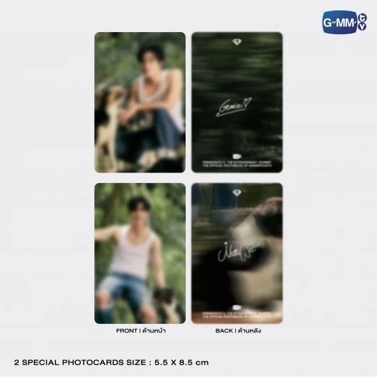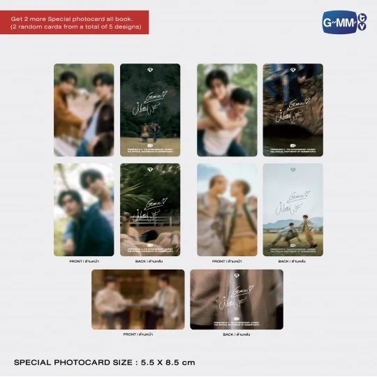 Special Photocard ขนาด 5.5 x 8.5 ซม. จำนวน 4 ใบ ประกอบด้วยภาพเดี่ยว 2 ใบ ภาพคู่ 2 ใบ ที่จะสุ่ม 2 แบบจาก 5 แบบ
