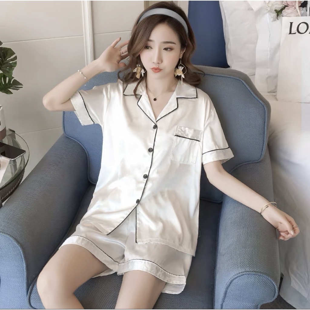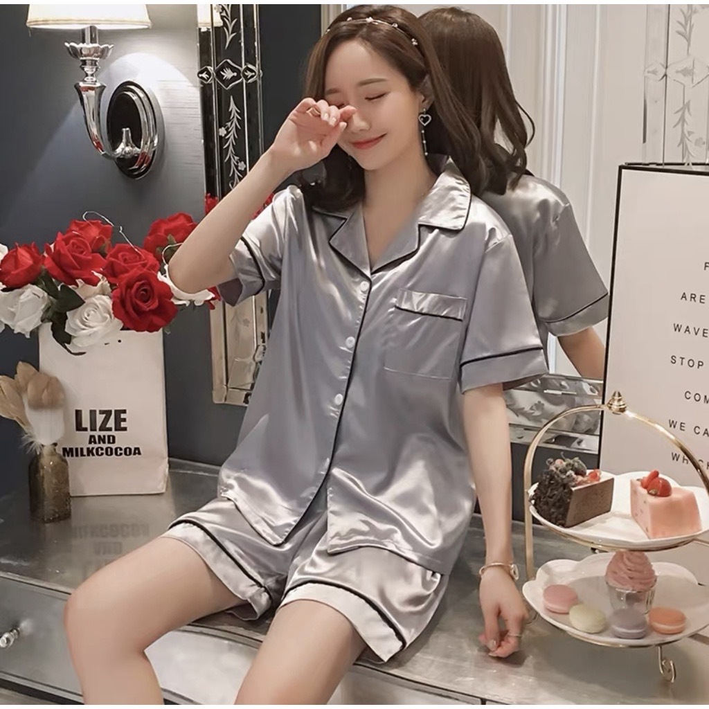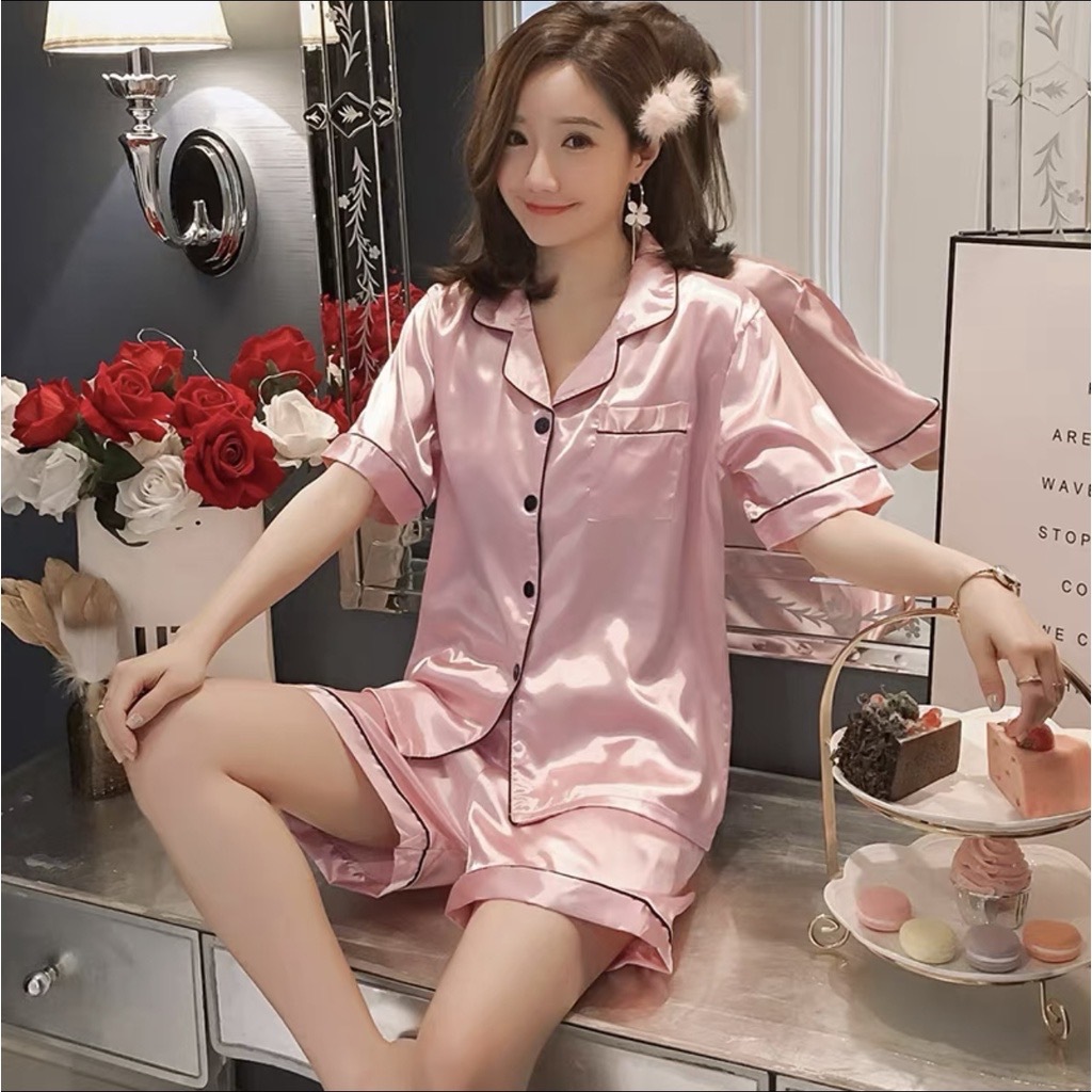 ชุดนอนแขนสั้นขาสั้น ชุดนอนผ้าซาติน***** กรุณาอ่านรายละเอียดก่อนกดสั่งซื้อนะคะ *****