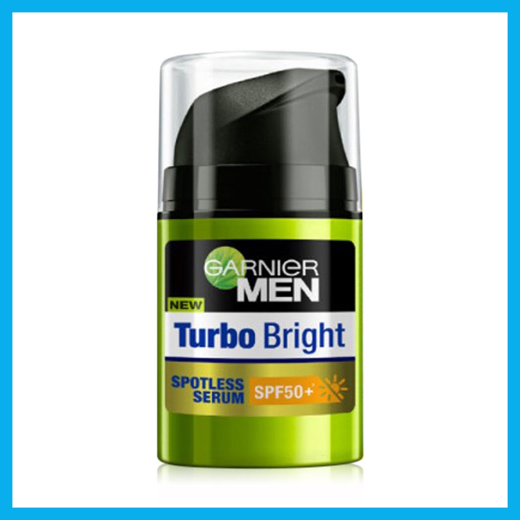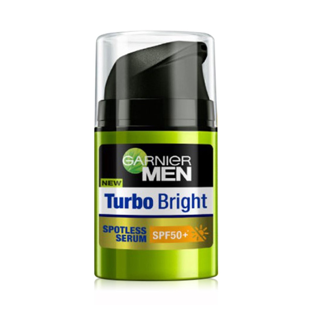 Garnier Men Turbobright Spotless Serum SPF50+ 40ml ที่สุดของเซรั่มบำรุงผิวกระจ่างใสสำหรับผู้ชาย ช่วยปกป้องผิวจากรังสี UVB นานขึ้น ด้วยวิตามินซีสูงและSPF50+ ช่วยดูแลผิวจากการถูกทำร้ายจากแสงแดด ช่วยให้ผิวดูกระจ่างใส พร้อม AirLicium ส่วนผสมที่บางเบาและมีประสิทธิภาพในการดูดซับความมันส่วนเกิน•วิตามินซี ที่มีคุณสมบัติโดดเด่นในด้านการดูแลผิวจากการถูกทำร้ายจากแสงแดด ช่วยให้ผิวดูกระจ่างใส