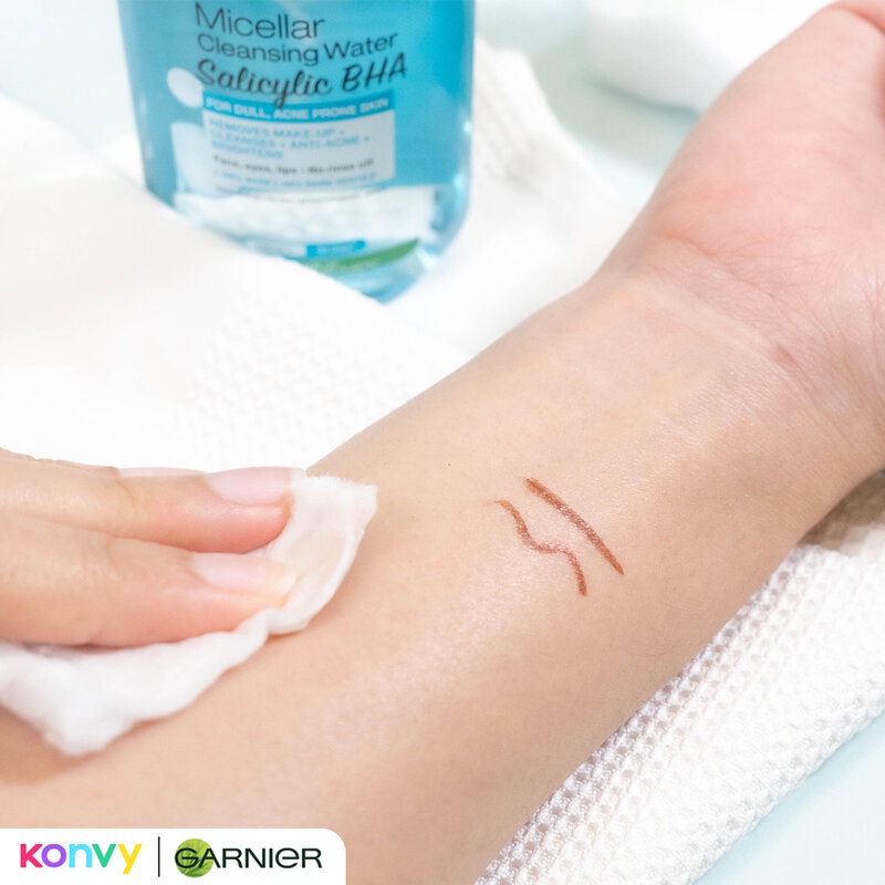 Garnier Skin Naturals Micellar Cleansing Water Salicylic Bha 400ml ผลิตภัณฑ์ทำความสะอาดผิวหน้า รอบดวงตา และริมฝีปาก สูตรสำหรับผิวหมองคล้ำ มีแนวโน้มเป็นสิวง่าย สิ่งสกปรก และฝุ่นละอองขนาดเล็กได้ดูหมดจด พร้อมช่วยจัดการปัญหาสิว และบำรุงให้ผิวดูกระจ่างใส โดยไม่ต้องล้างออก และไม่ทิ้งสิ่งสกปรกตกค้างไว้บนผิวหน้า• พลังโมเซล่า เทคโนโลยี ช่วยดูดจับเครื่องสำอาง และสิ่งสกปรกเสมือนแม่เหล็ก ไม่ต้องถู