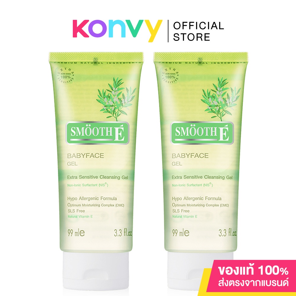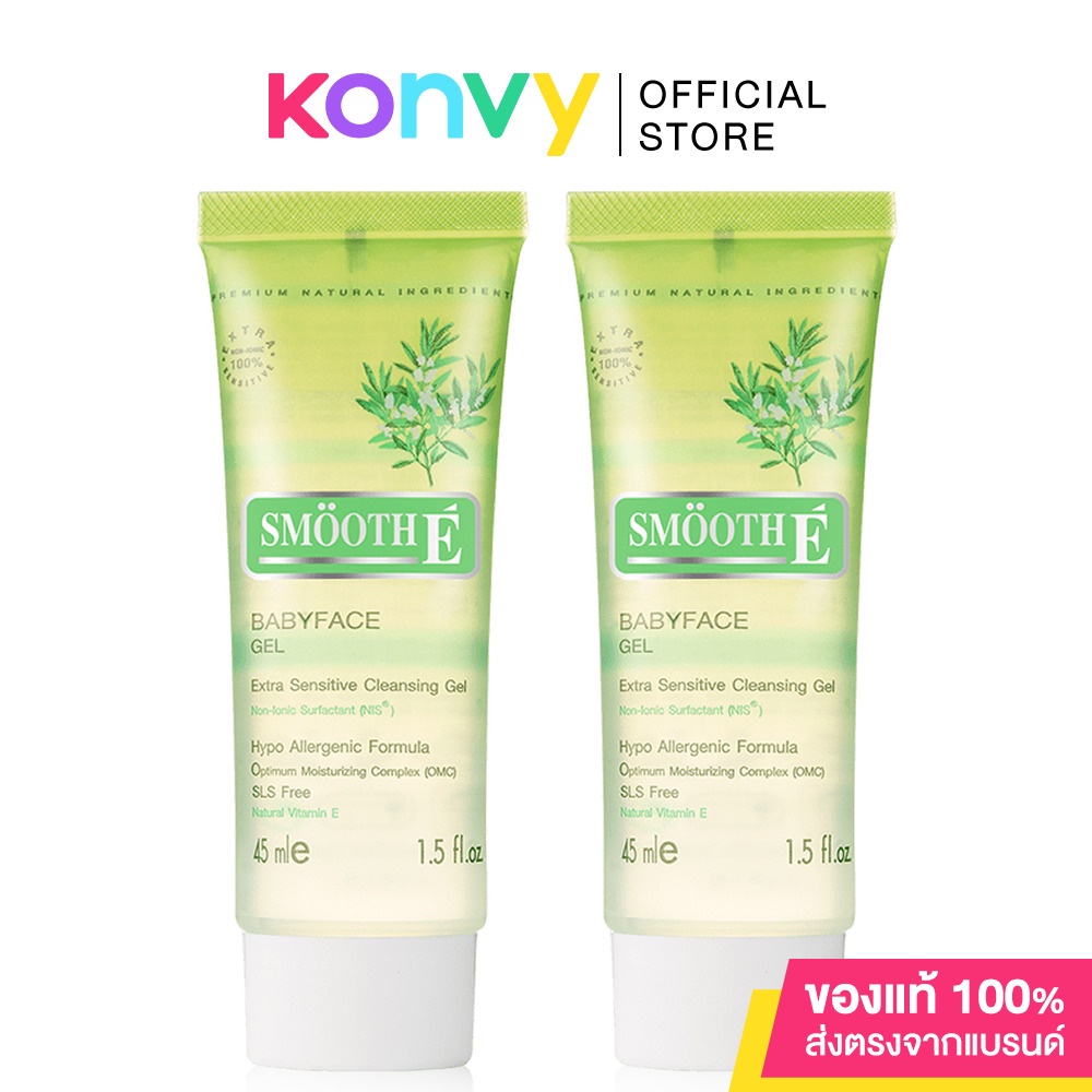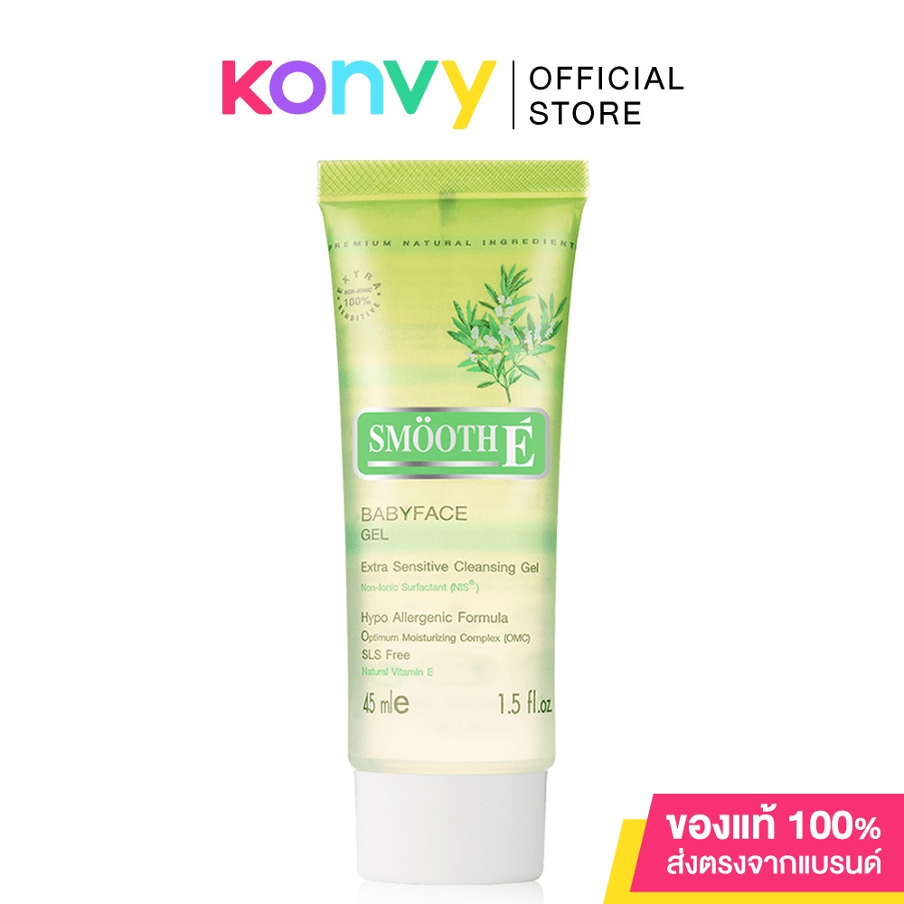 Cr: Facebook.com/SmoothEThailandSmooth E Babyface Gel 45mlเจลล้างหน้าสูตรไม่มีฟอง100% Non-Ionicไม่มีประจุไฟฟ้าจึงไม่ทิ้งสารตกค้างอันเป็นสาเหตุหนึ่งของสิวและริ้วรอยปราศจากสารที่ทำให้เกิดการแพ้และระคายเคือง(Hypoallergenic)มีความอ่อนโยนต่อผิวหน้าสูง เนื้อเจลปราศจากส่วนผสมของน้ำมัน(Oil Free)และแอลกอฮอล์(Alcohol Free)ไม่ก่อให้เกิดการระคายเคืองแม้กระทั่งบริเวณที่บอบบางของผิวรอบดวงตาจึงเหมาะกับผู้ที่มีผิวบอบบางแพ้ง่ายหรือผิวที่มีแนวโน้มเป็นสิวอุดตันง่าย