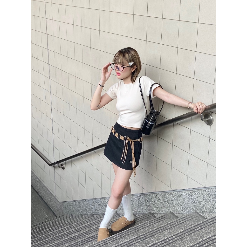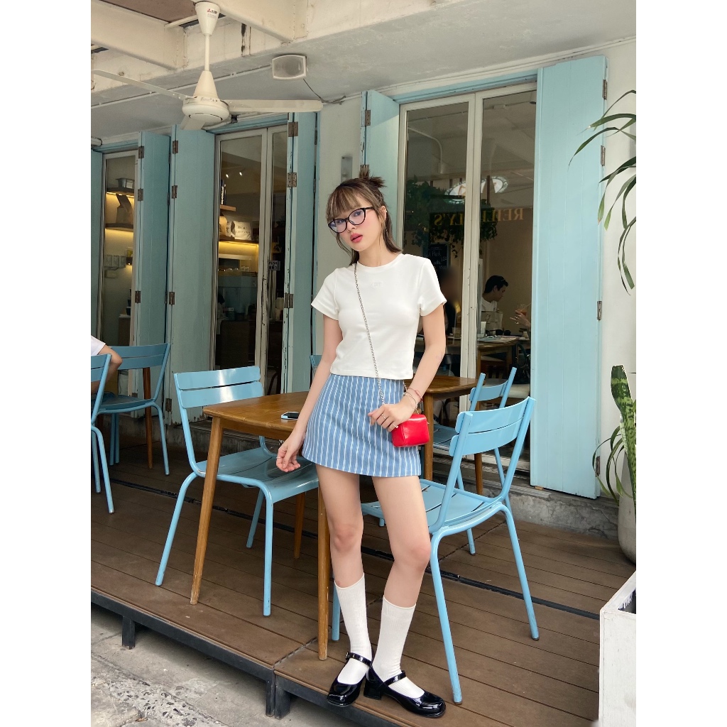 Áo cắt cổ tròn tay ngắn PRP x SPN viền nhún bèo cổ tròn thoải mái cho quán cà phê 45