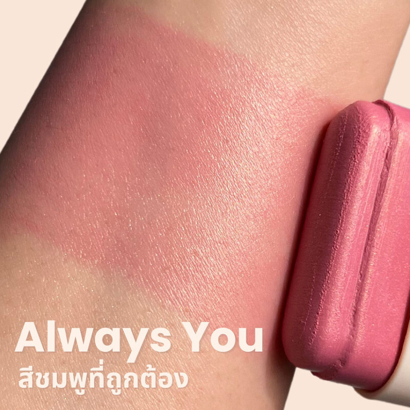 หมุนเนื้อผลิตภัณฑ์แตะไปที่บริเวณแก้มใช้แปรงหรือนิ้วมือเกลี่ยทา สามารถเพิ่มความเข้มได้ตามต้องการ