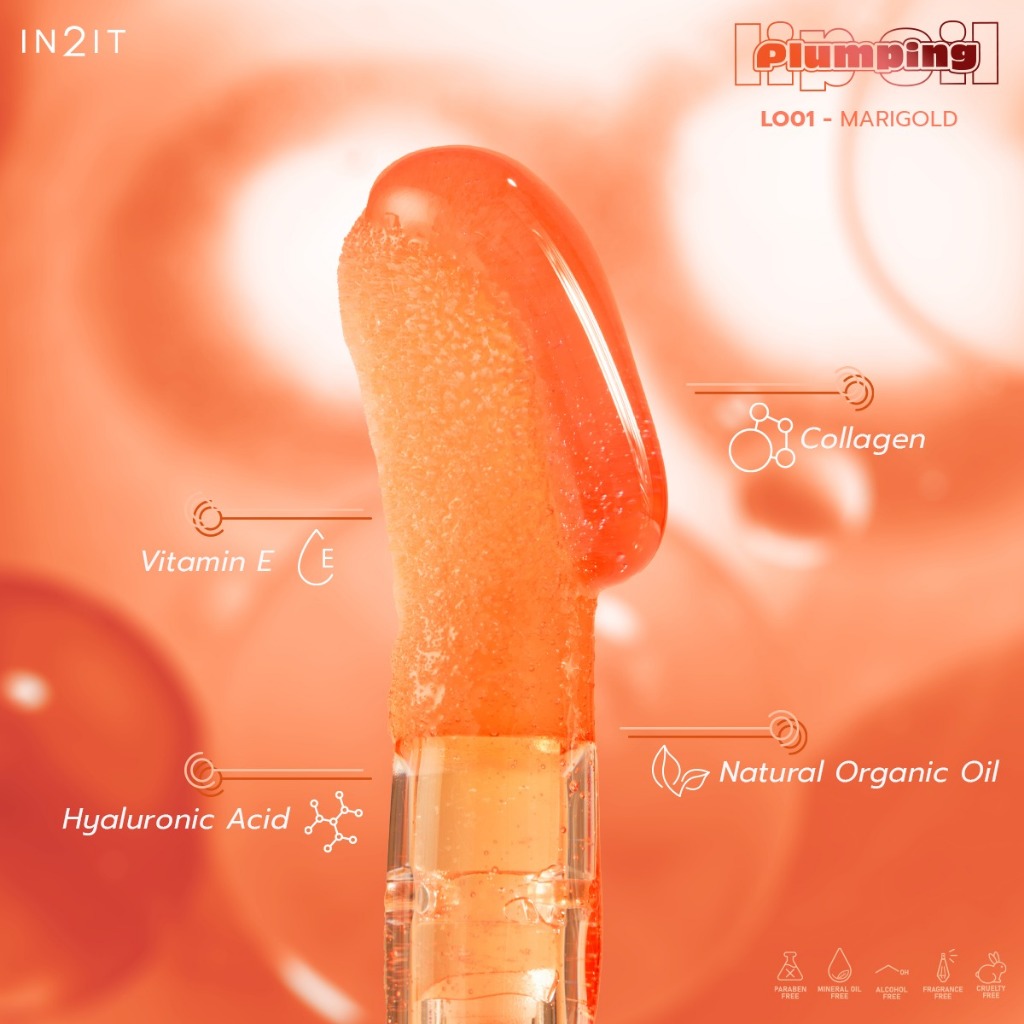 IN2IT Plumping Lip Oil ลิปออยล์เนื้อบางเบา ที่มอบความฉ่ำแวววาวมากเป็นพิเศษเลยค่าา ทาแล้วเมย์โคโครู้สึกสบายริมฝีปาก ไม่เหนียวเหนอะหนะอีกด้วยน้าา เนื้อออยล์มีสีโปร่งใสบางๆ ช่วยทำให้ริมฝีปากมีความกระชับ เรียบเนียน ลดร่องปากและริ้วรอย ทำให้ริมฝีปากเมย์โคโคแลดูมีสุขภาพดี อีกทั้งยังอุดมด้วยส่วนผสมของสารบำรุงเพื่อเพิ่มความนุ่ม ชุ่มชื้น และทำให้ริมฝีปากอวบอิ่ม เมย์โคโคดูเปล่งปลั่ง น่าจุ๊บ น่าสัมผัสมากยิ่งขึ้นแกกก