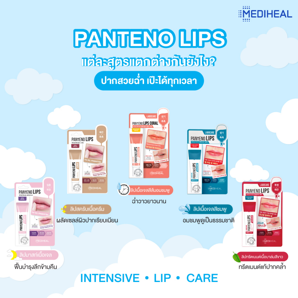 Mediheal Labocare Pantenolips ลิปเมดิฮีล บำรุงปาก ตัวช่วยฟื้นฟูริมฝีปากให้เมย์โคโคชุ่มชื่น ดูสุขภาพดี แก้ปัญหาผิวปากแตกแห้ง คล้ำเสีย พร้อมบำรุงอย่างล้ำลึก ผ่านการทดสอบการระคายเคืองโดยแพทย์ผิวหนัง ปราศจากแอลกอฮอล์ พาราเบน สารกันเสีย