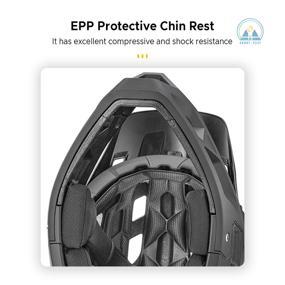 หมวกกันน็อคจักรยานเสือภูเขานี้มาพร้อมกับการรองรับคาง EPP หมวกกันน็อคจักรยานเสือภูเขานี้ให้การปกป้องที่ดีขึ้น