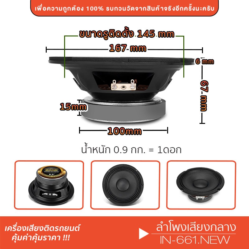 ลำโพงเสียงกลาง ขนาด6.5นิ้ว IN-661.NEW