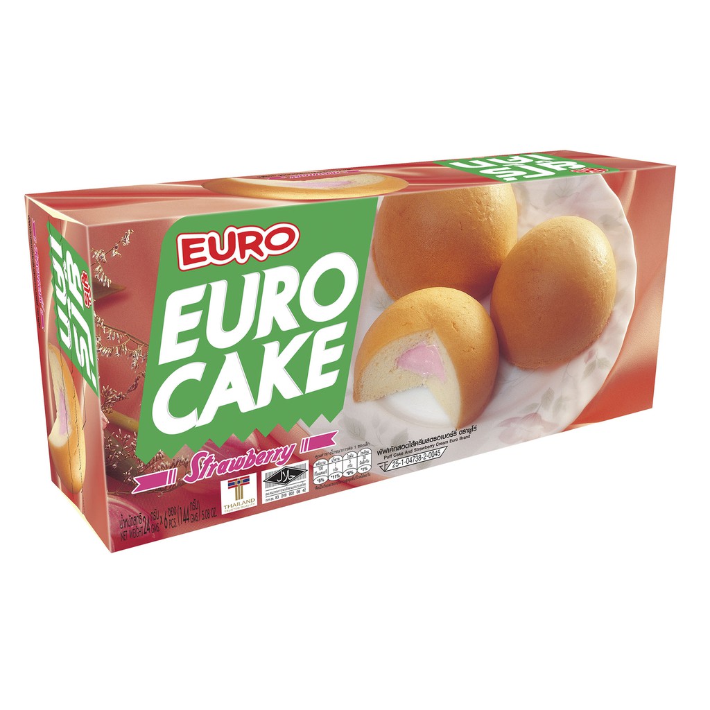 -Euro ฟัฟเค้กสอดไส้ ตรายูโร่ 144g ครีมสตรอเบอร์รี่