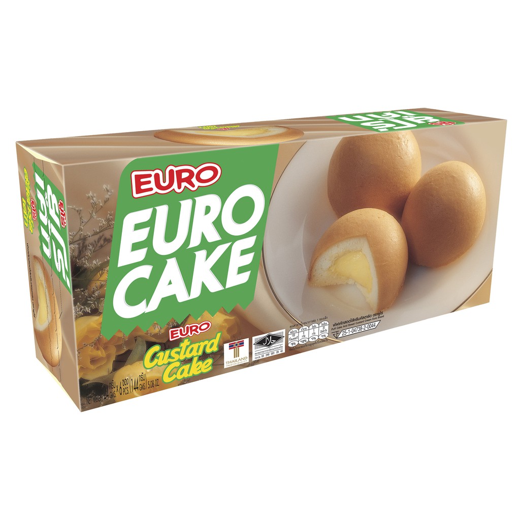 Euro ฟัฟเค้กสอดไส้ ตรายูโร่ 144g ครีมคัสตาร์ดส่วนผสม
