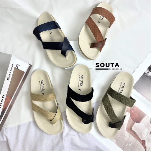 🌷SOUTA 🌷รองเท้าแตะแฟชั่น รองเท้าแตะสไตล์วินเทจ สวมใส่สบาย คุ้มค่าเกินราคา 💯-สายทอสปันหนา แบบนิ่ม