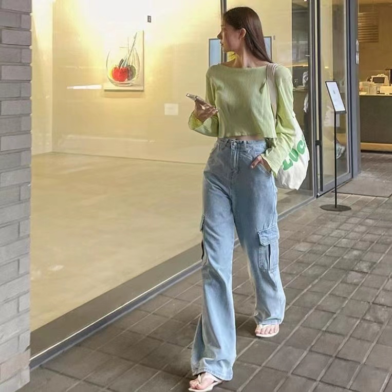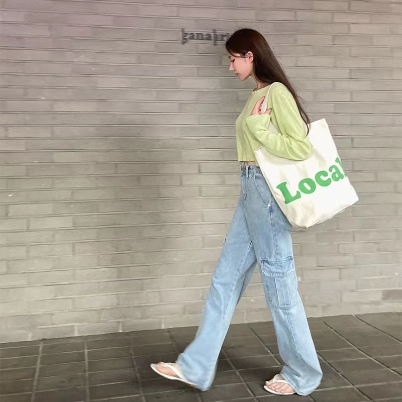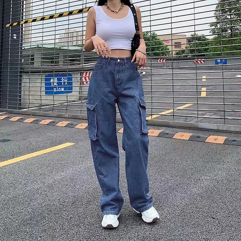 💥YH #529💥S-3XL💥Quần bò cạp cao quần bò ống rộng cổ điển phong cách Hàn Quốc quần dài đẹp sang trọng