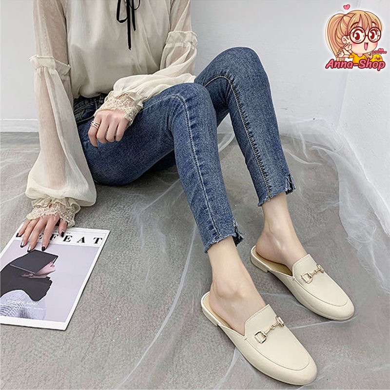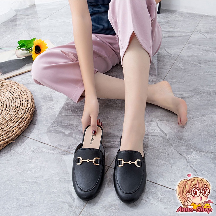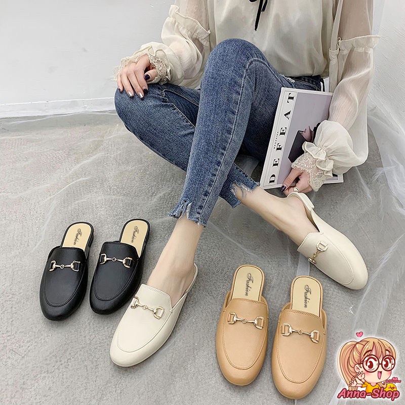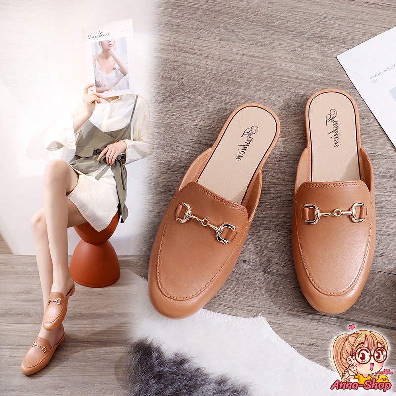 👏สินค้าพร้อมส่ง มาใหม่จ้าา 👏- รองเท้าสวมเปิดหลัง งานหนังพียูอย่างดี ทรงหัวเหลี่ยมตัด